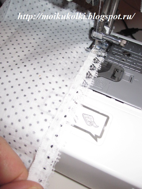 соединяю две детали "лицо к лицу" и строчу по белой линиии,там где ее нет не строчим!! |