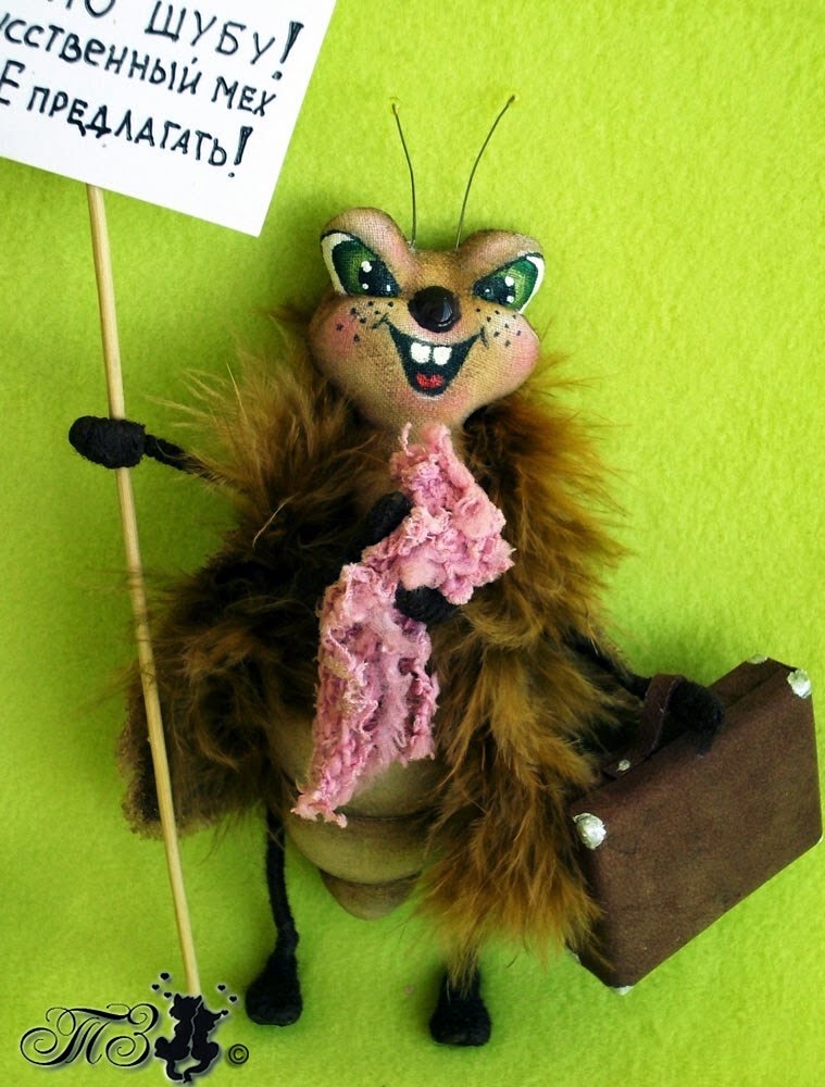 Молли получилась немного смешной, чуточку хищной и довольно-таки жадной особой (что, в принципе, присуще подобным существам). Еще не доела бабушкину кофту, а уже готова к переезду в новый шкаф с очередными вкусными шубками...