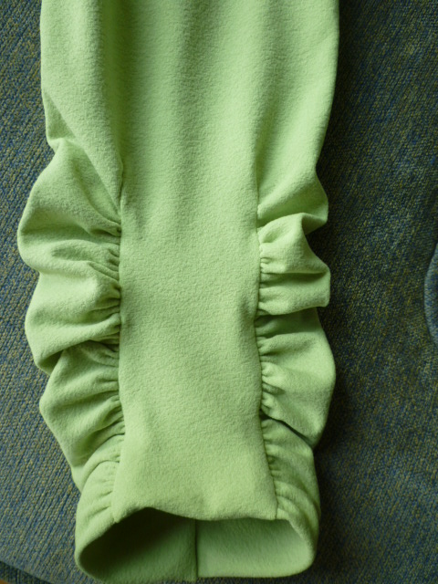 Once you have determined where you would like the sleeve to finish, cut that portion away. Now determine how high up the arm you would like the gathers to go. The dotted line in the picture below represents this.