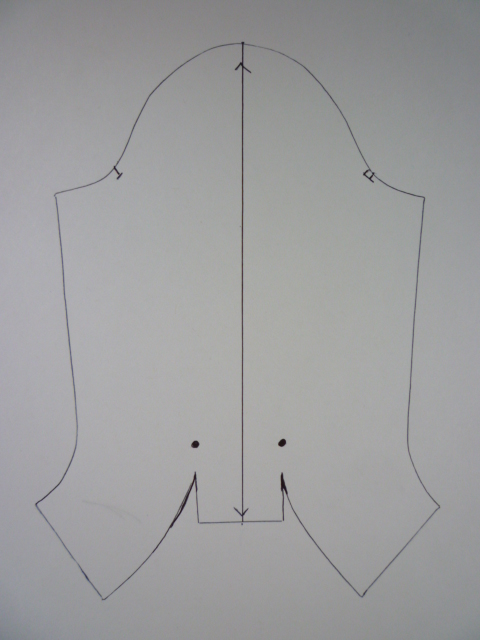Now that the sections have been equally spread, connect the lines. The dots that you see in the above picture are at the top of the tab section. Add 1/4" seam allowance to the tab as well as the shirring lines.