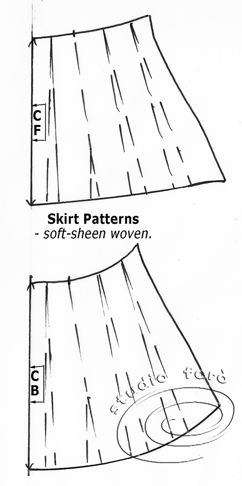 The front and back skirt panels have been flared toward the hem for fullness, without any fullness under the bust. I would most likely cut the skirts on the bias as long as the fabric is stable enough.
