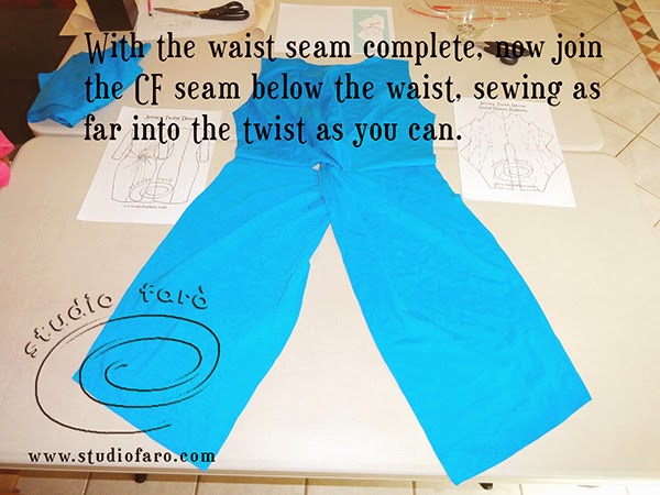 С талии шва полной, теперь присоединиться к CF шов ниже талии, шитье, насколько в поворот, как вы можете.