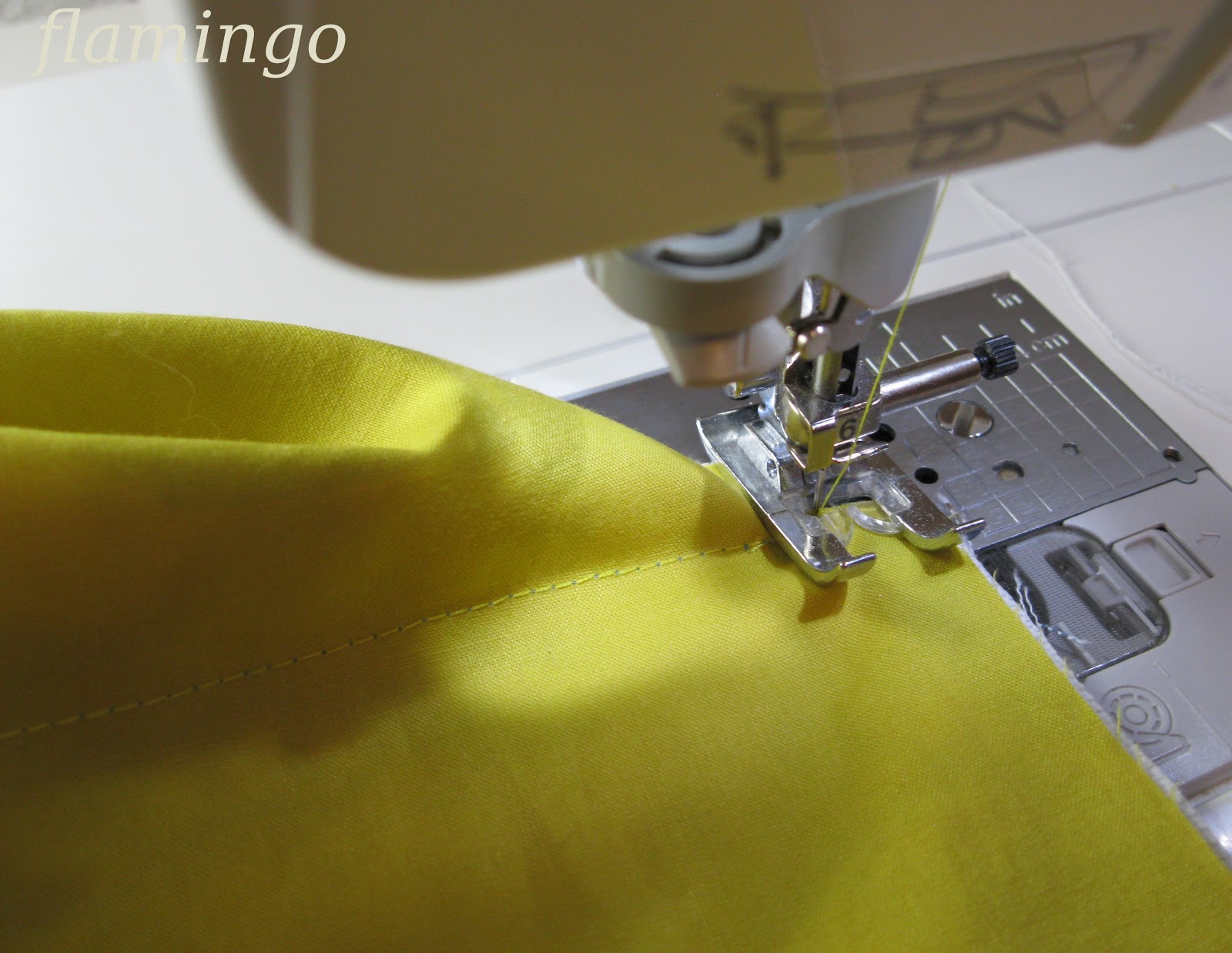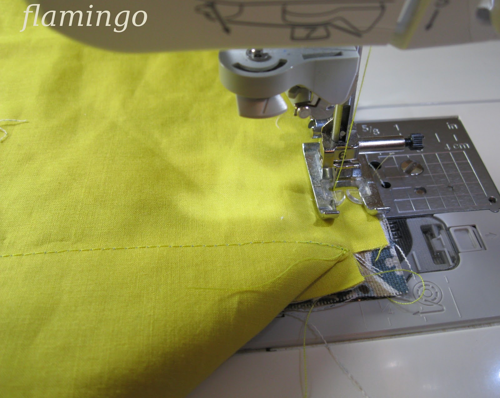 Прострочить по линиям углов, не доходя до нижних срезов на ширину припуска,