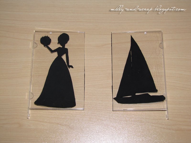 На принтере я распечатала нужные мне картинки, которые я решила превратить в штампы. Внимание - печатать нужно в зеркальном отражении! Потом эти картинки на клей-карандаш я приклеила на бумажную сторону коврика и аккуратно вырезала их макетным ножом. Вот и все - штампы готовы! Сначала для того чтобы ими пользоваться, я опять же на клей-карандаш приклеивала их к прозрачной коробочке из под CD, штамповала, потом отклеивала (клей-карандаш слабо держит), промывала, вытирала и складывала в коробочку. Но со временем мне надоело постоянно приклеивать их к основе, чтобы поработать. Решение было таким: берем мужскую силу 1 штуку, даем ему пластиковые коробочки от дисков, заранее размеченные на блоки под штампы, и ножовку по металлу (или чем там он еще сможет аккуратно распилить этот пластик). Коробочек от CD (двойных и прозрачных) у меня как раз к тому времени накопилось много, тк для экономии места в шкафу я все диски из них переложила в пластиковые банки для CD. Вот как выглядят пустые коробочки: