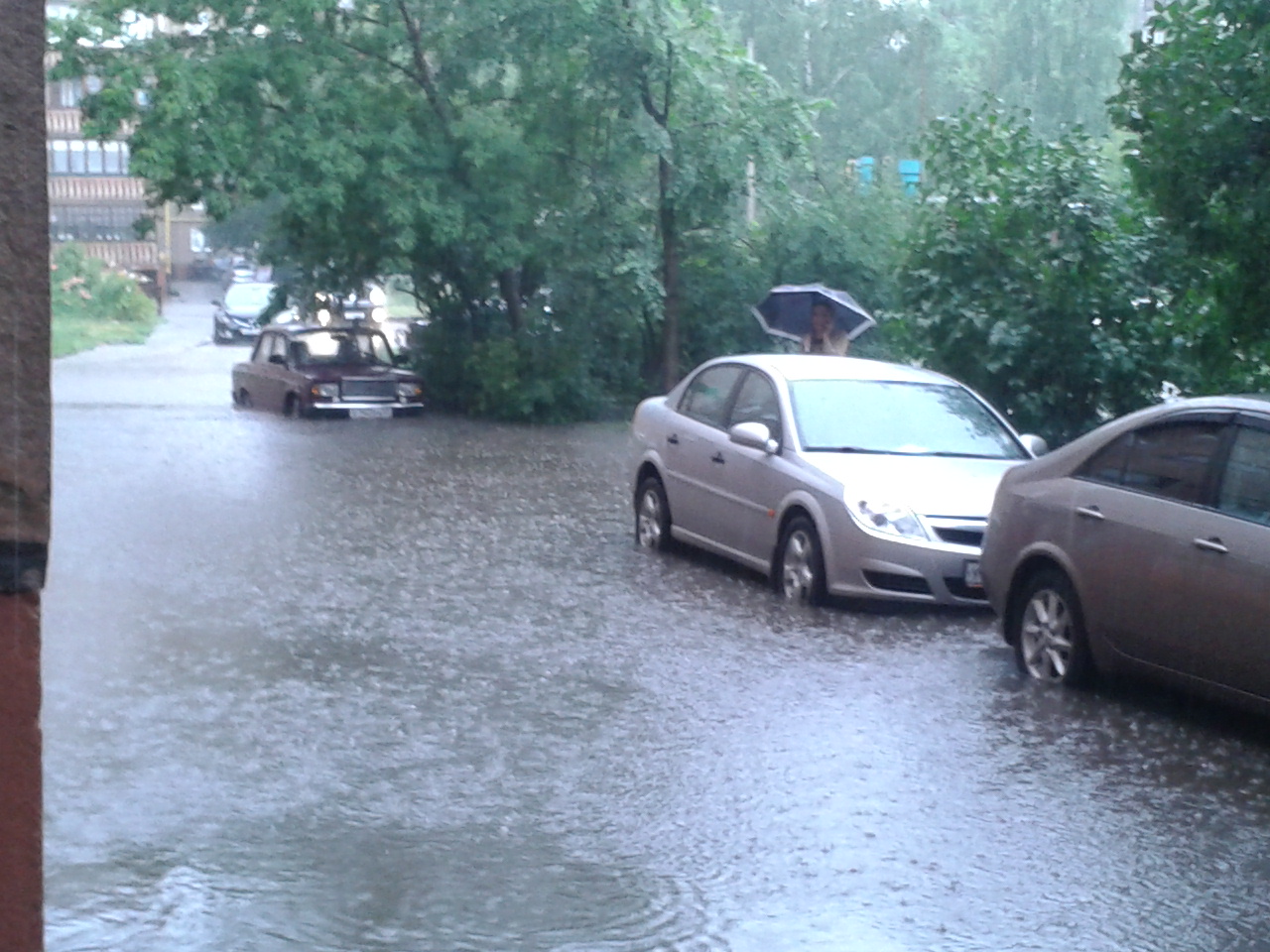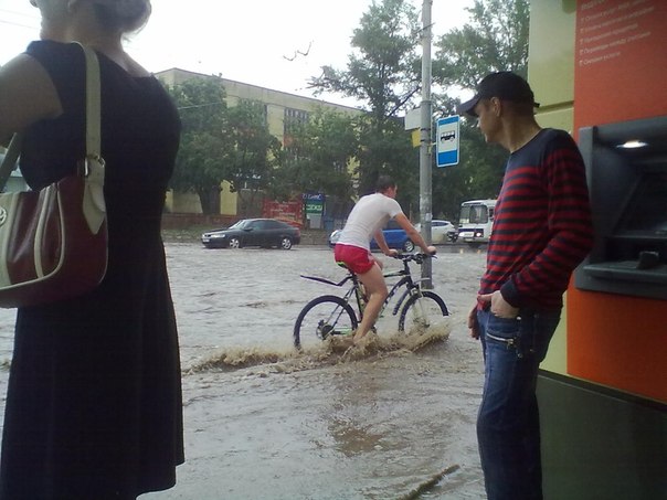 Ну и бонус всем дочитавшим до конца. Неделю назад наш городок заливало дождиком… Ну как дождиком…Ливень в течение часа, конечно, не всемирный потоп, но полное отсутствие ливнёвок своё чёрное, вернее, мокрое ))) дело сделало…