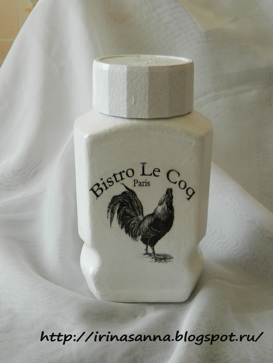 Декупаж. У всех есть уже баночки-шкатулочки монохромные, а я в отстающих ))) Исправилась! В общем-то нравится, но как-то чегой-то не хватат))) Подскажите, люди добрые, а?