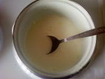2. Желатин добавь в оставшееся молоко и дай ему набухнуть. После чего подогрей смесь на медленном огне, не давая ей закипеть. В конце добавь щепотку сахара, соли и на кончике ложки горчицы. Размешай все тщательно и поставь остывать, пока смесь не станет комнатной температуры. Это будет добавка к майонезу.