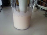 1. В высоком стакане блендера смешай 100 мл масла и 50 мл холодного кипяченого молока. Взбей все до однородной эмульсии. Затем добавь 3-4 капли уксуса, 3 г горчицы, 1 ч. л. сахара, щепотку соли. В итоге у тебя получиться примерно 180 мл готовой основы для майонеза.