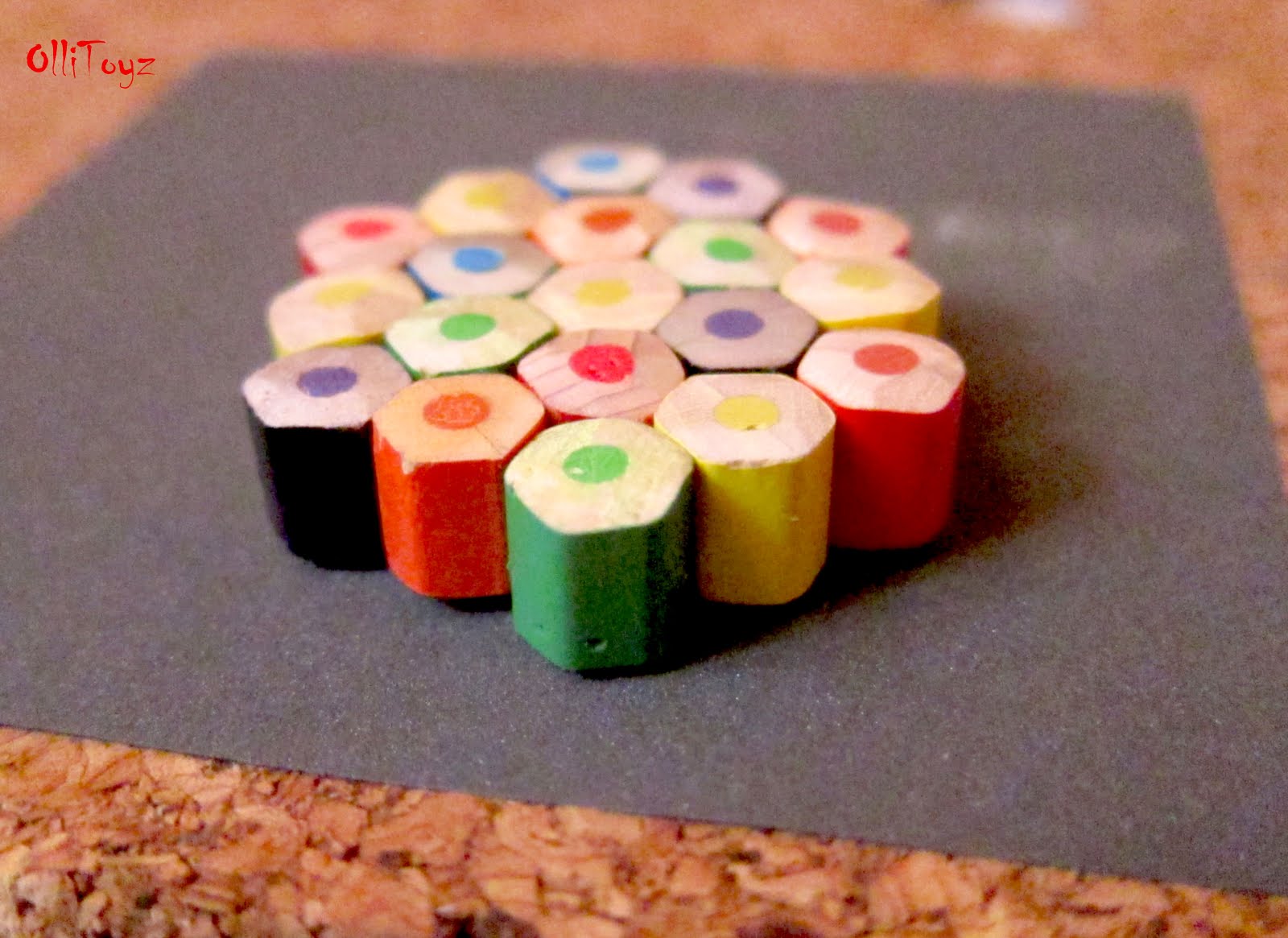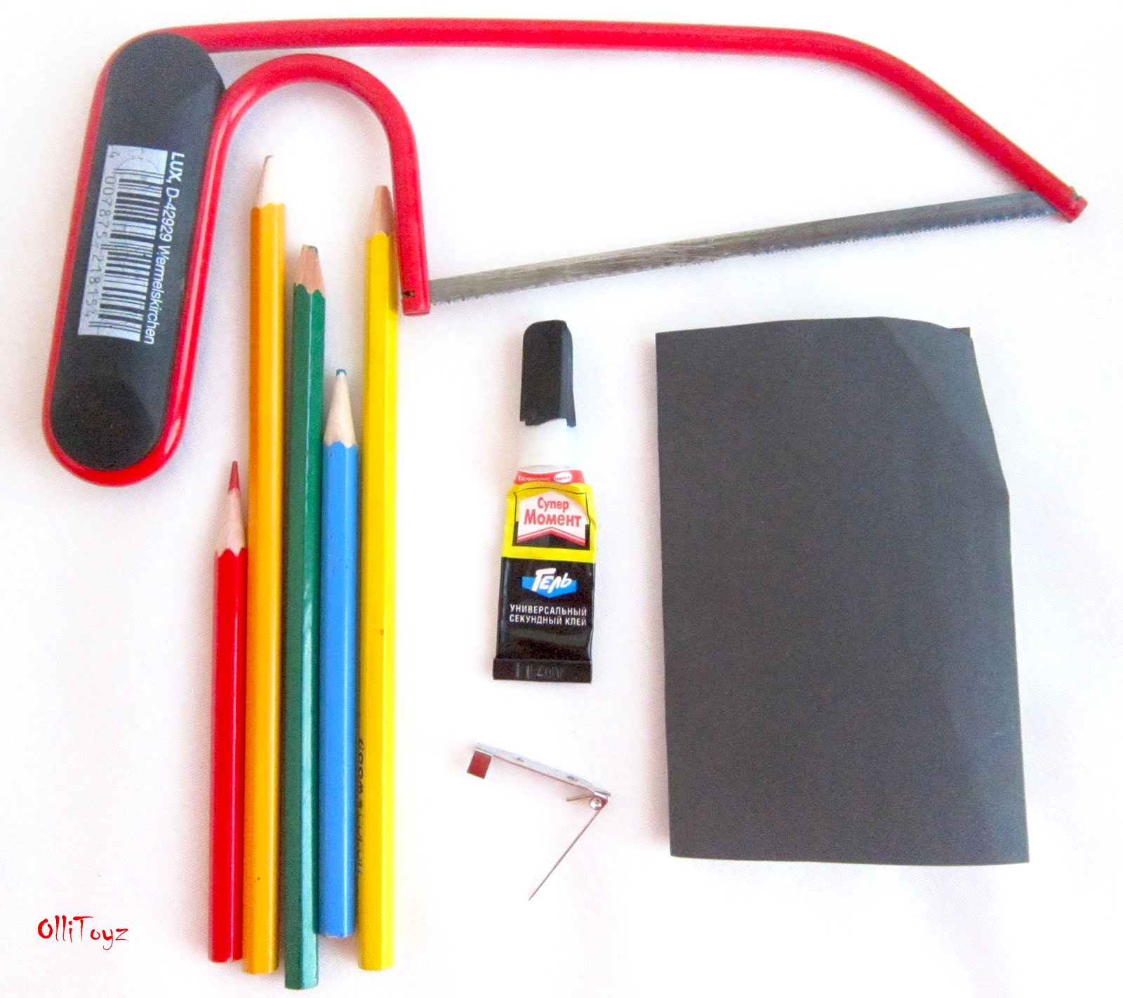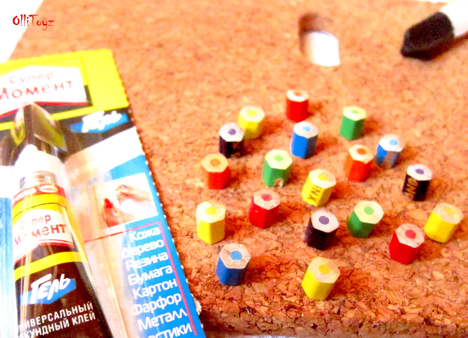 Отпиливаем от карандашей одинаковые пеньки длиной 0,7 см