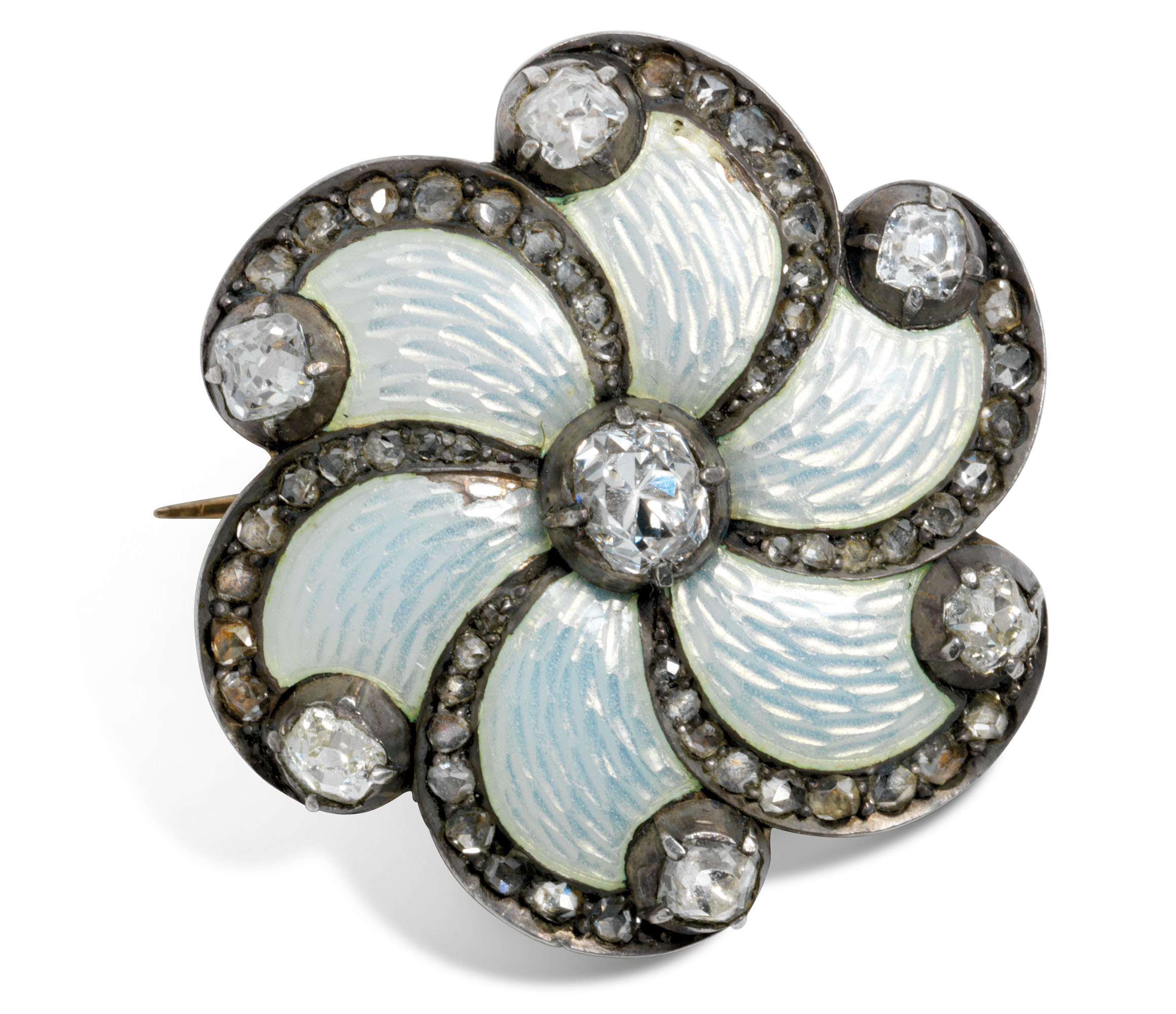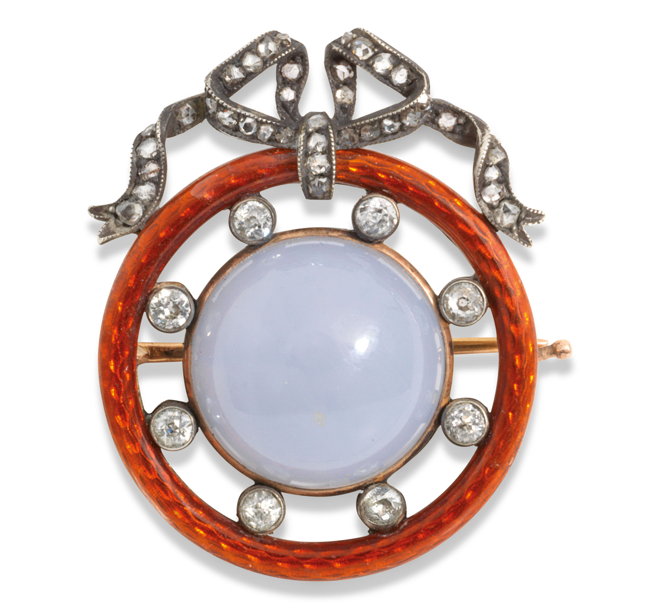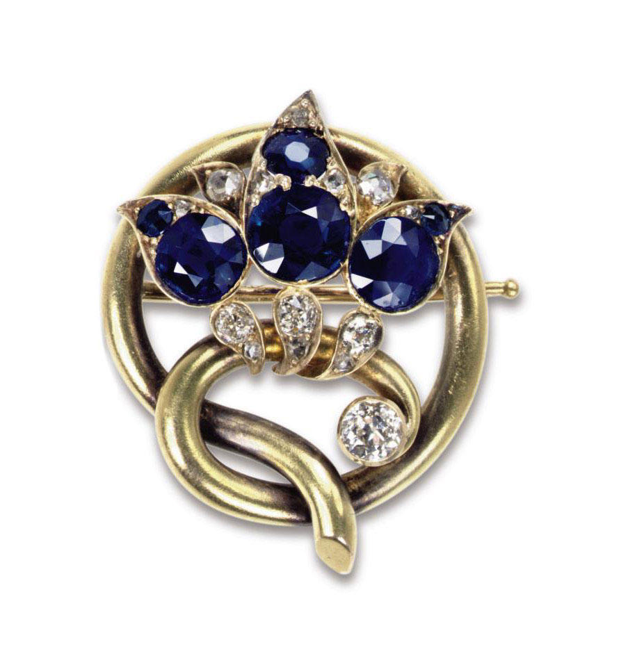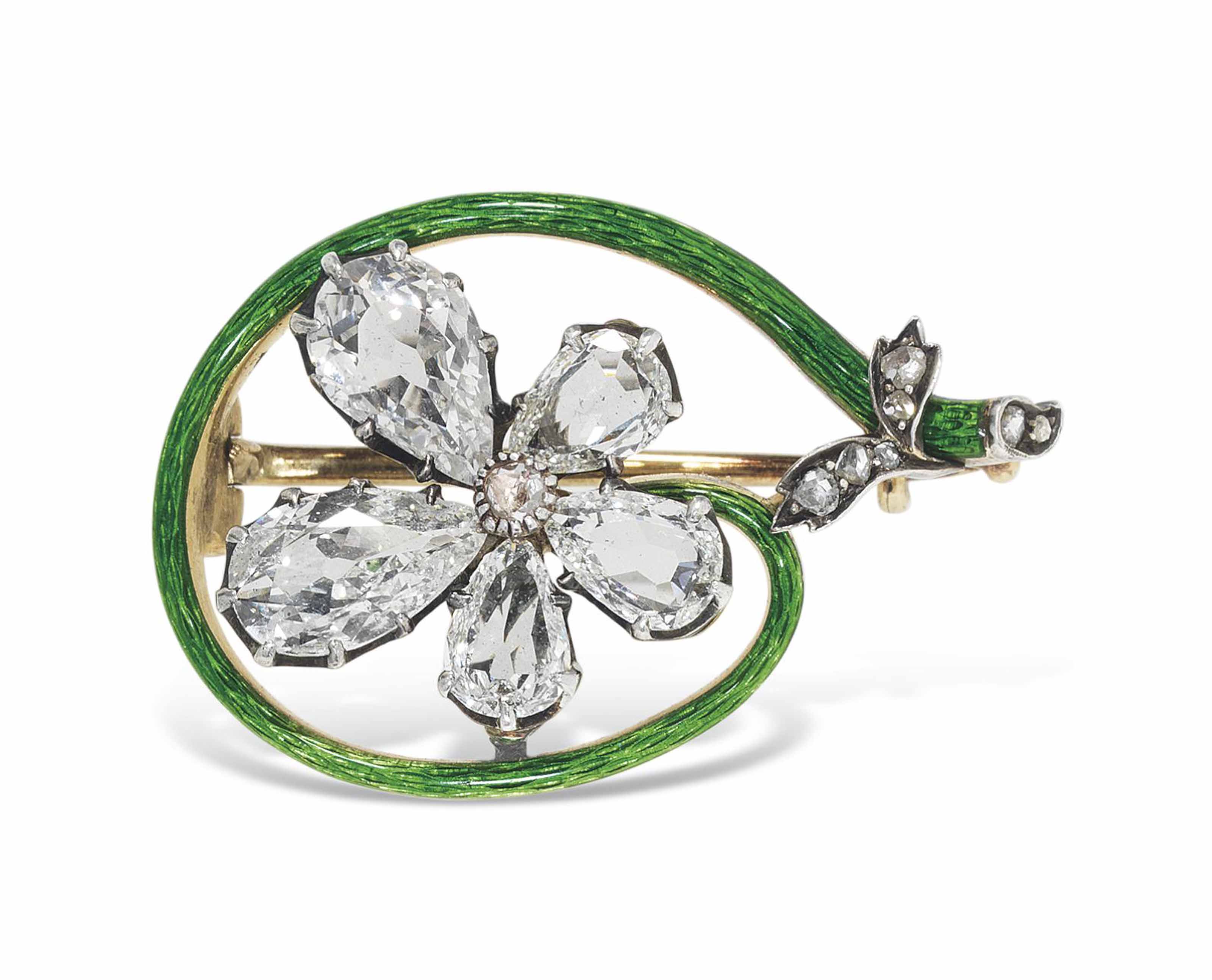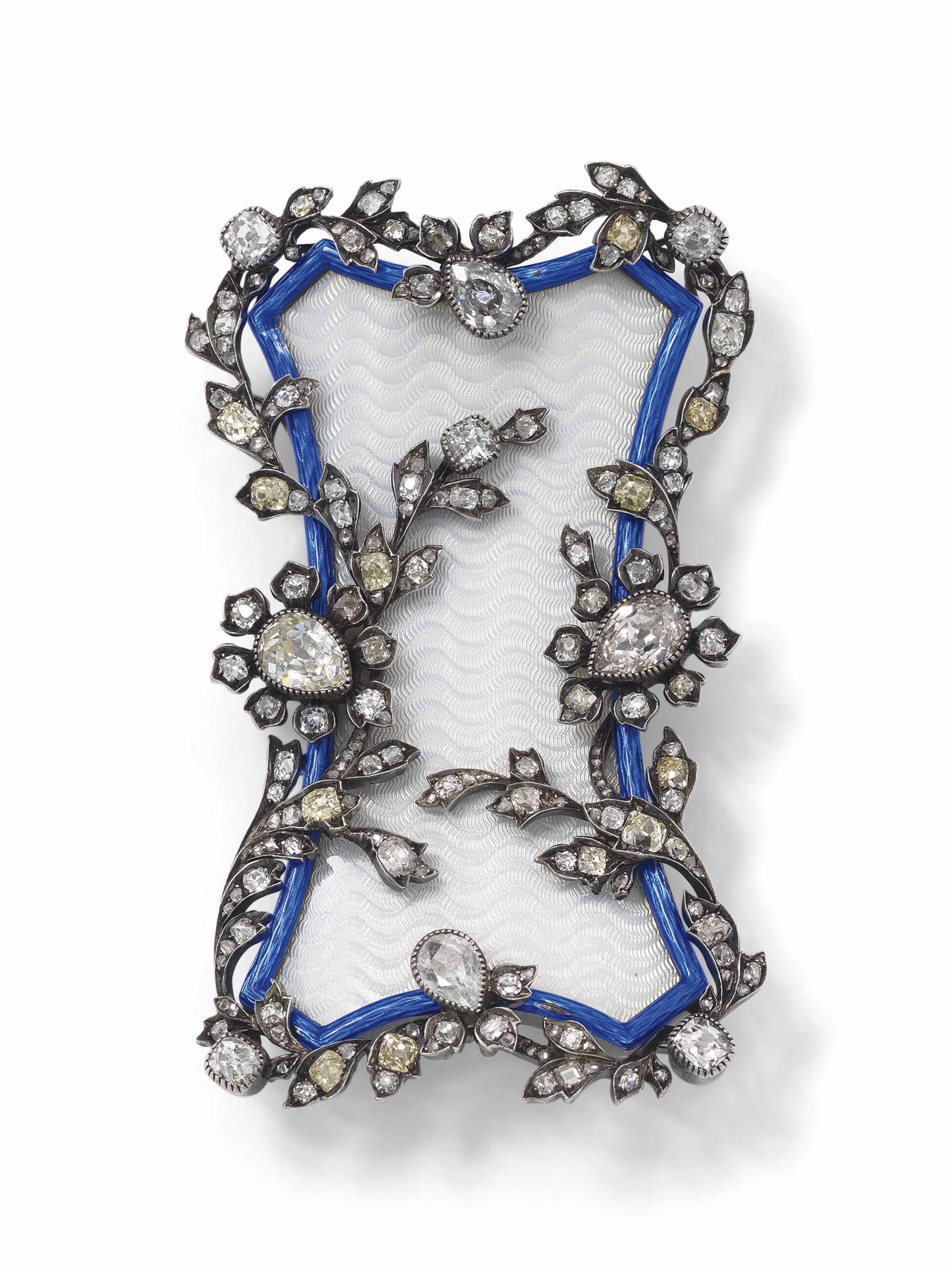 Áðîøü ñ ãèëüîøèðîâàííîé ýìàëüþ â çîëîòîé îïðàâå, óêðàøåííàÿ äðàãîöåííûìè êàìíÿìè