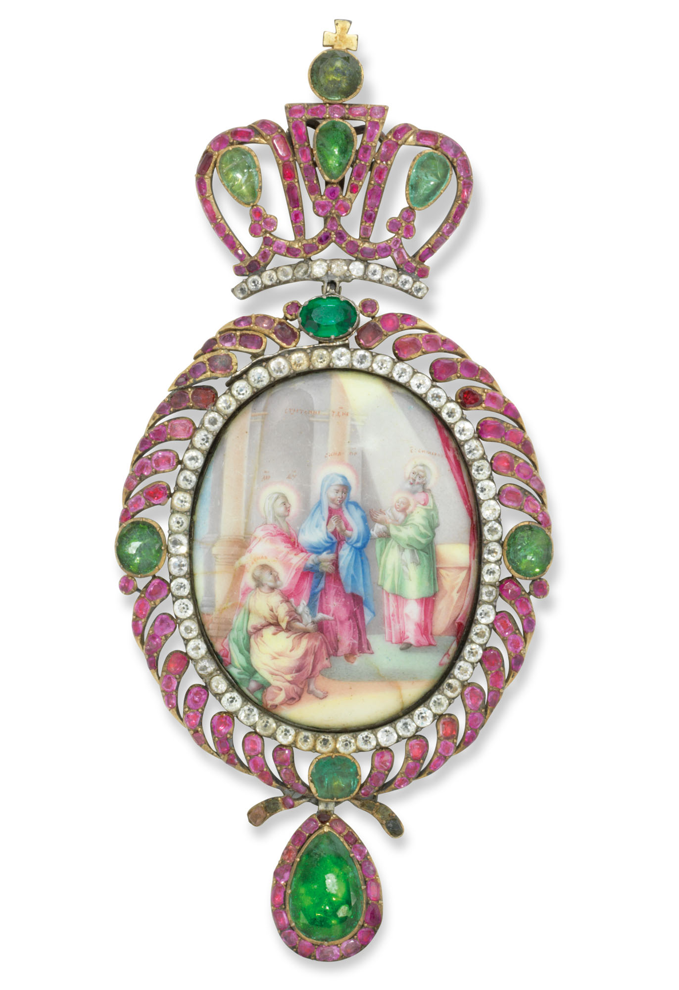 Çîëîòîé ÊÐÅÑÒ Ñ ÃÈËÜÎØÈÐÎÂÀÍÍÎÉ ÝÌÀËÜÞ, ÓÊÐÀØÅÍÍÛÉ ÄÐÀÃÎÖÅÍÍÛÌÈ ÊÀÌÍßÌÈ