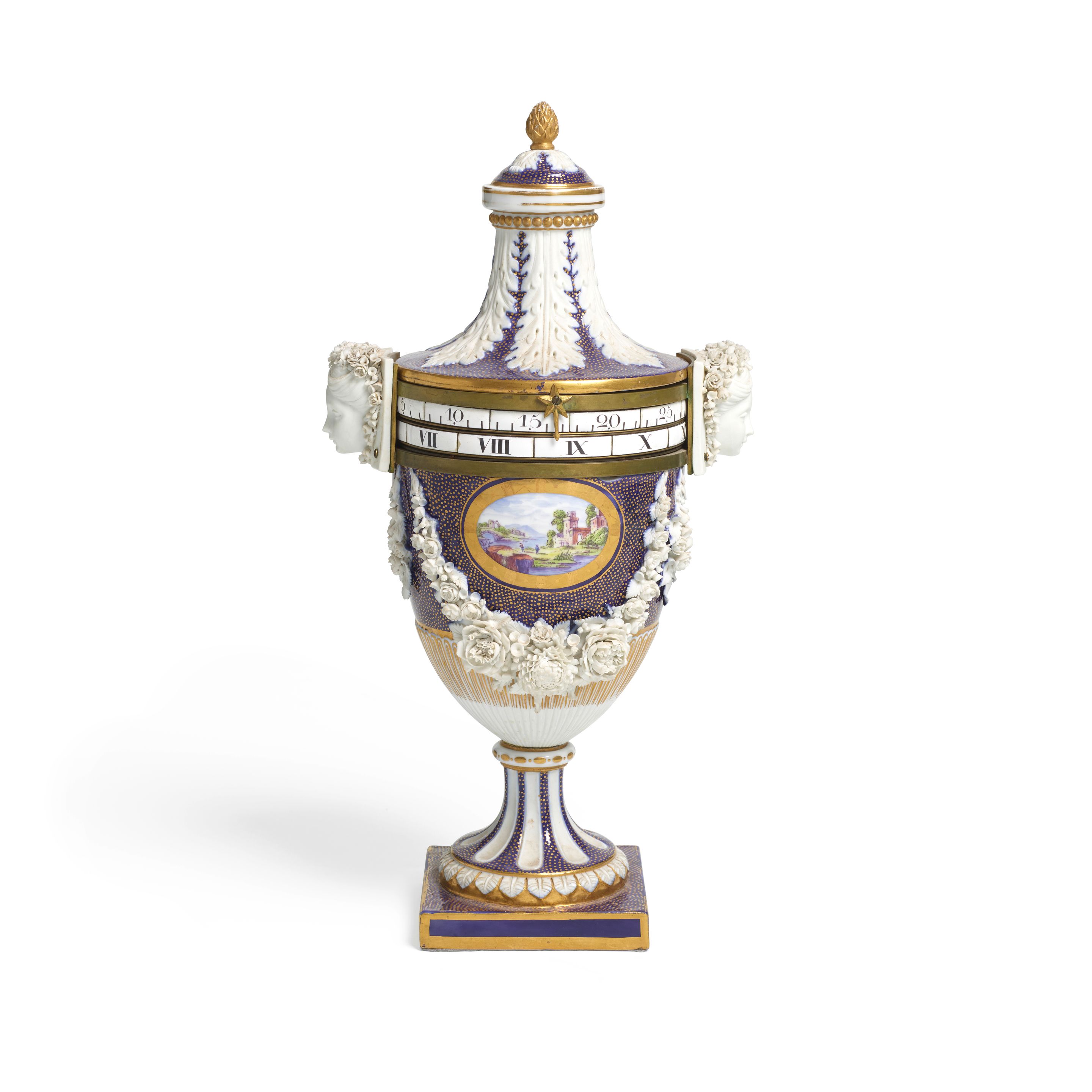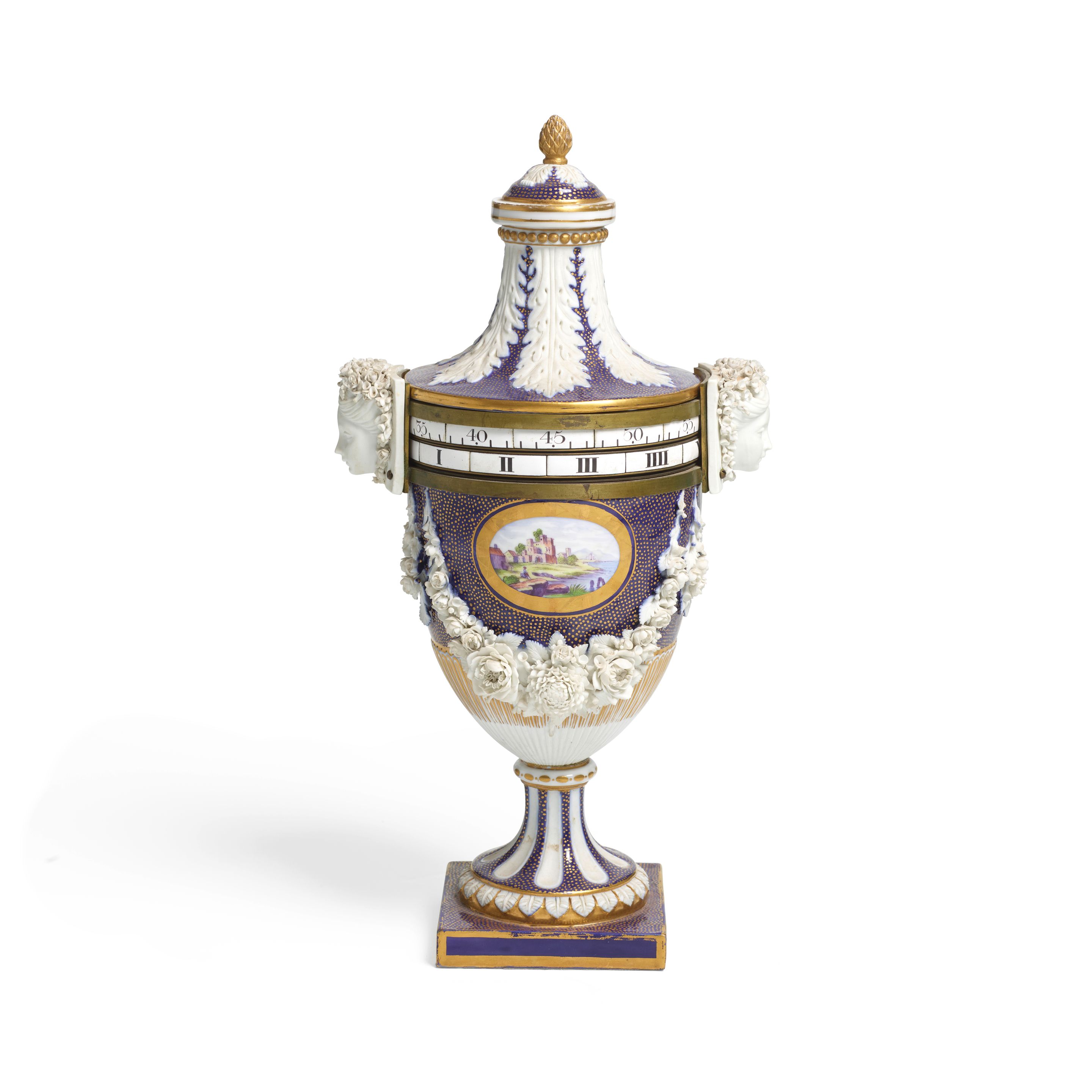 A RARE FRENCH PORCELAIN URN CLOCK (PENDULE À CERCLES TOURNANTES)