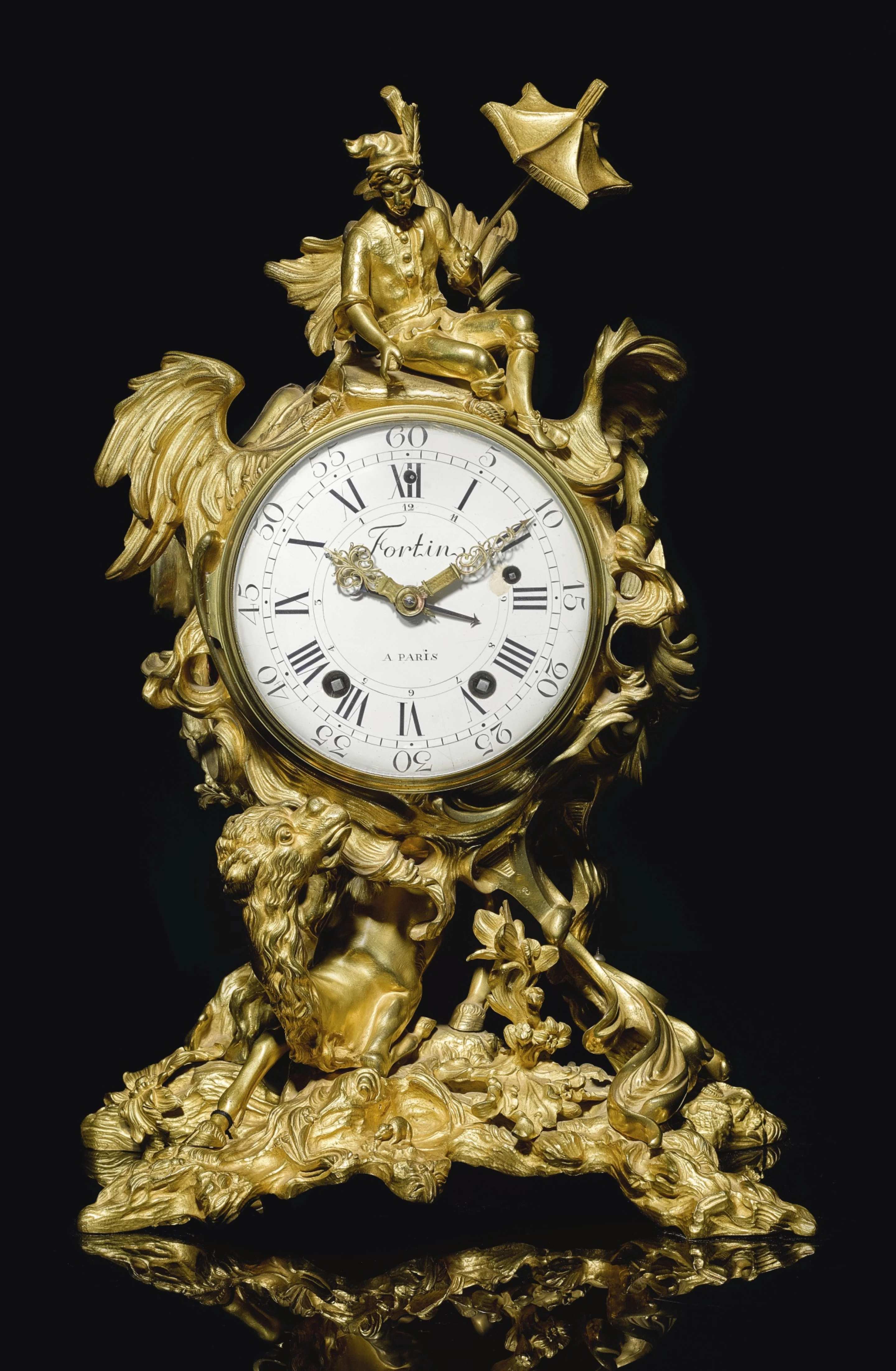 A Louis XV gilt-bronze mantel clock with alarm by Fortin, Paris, circa 1750, with later quarter repeating work