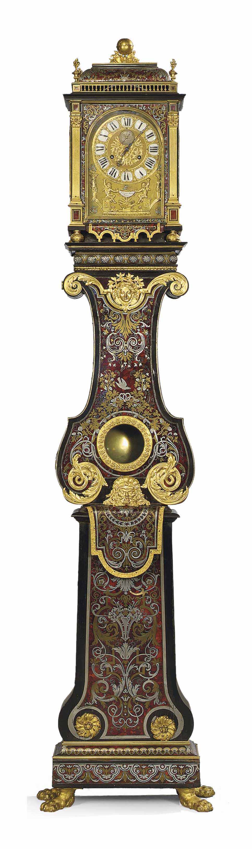 A LOUIS XIV ORMOLU-MOUNTED ENGRAVED BRASS AND PEWTER INLAID PREMIERE .