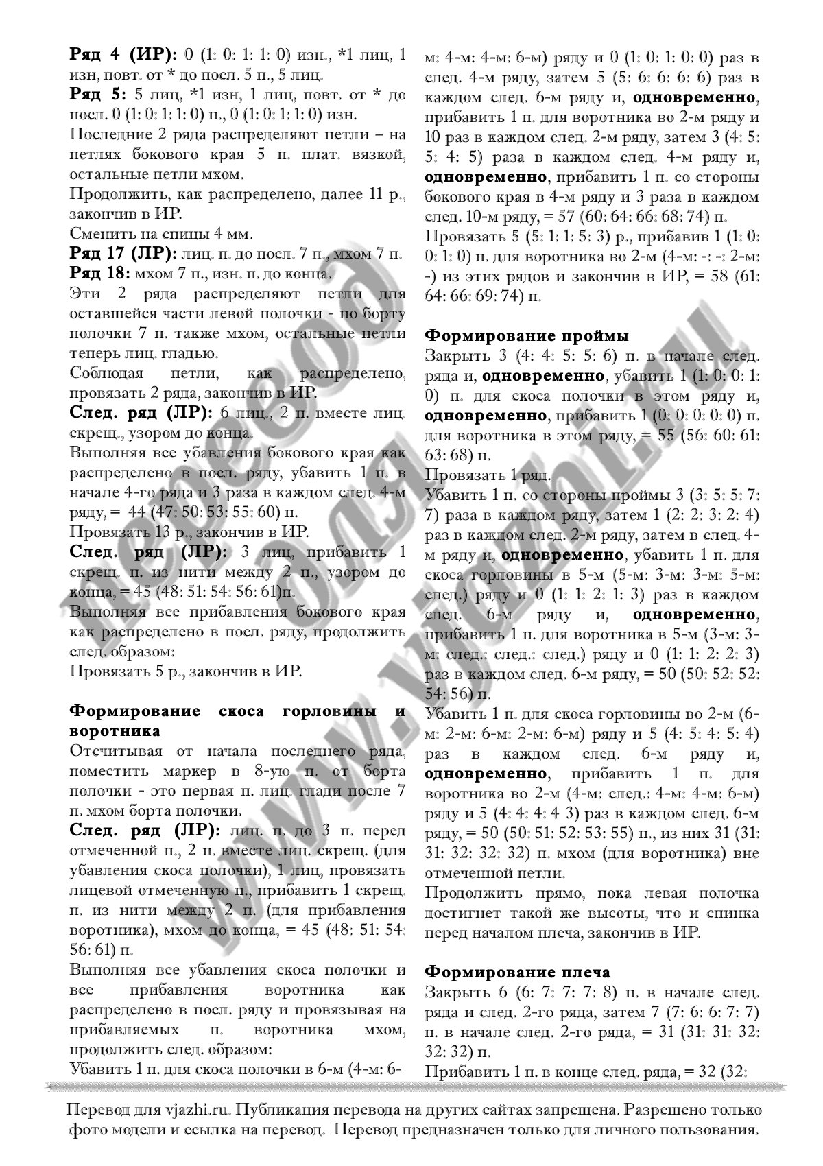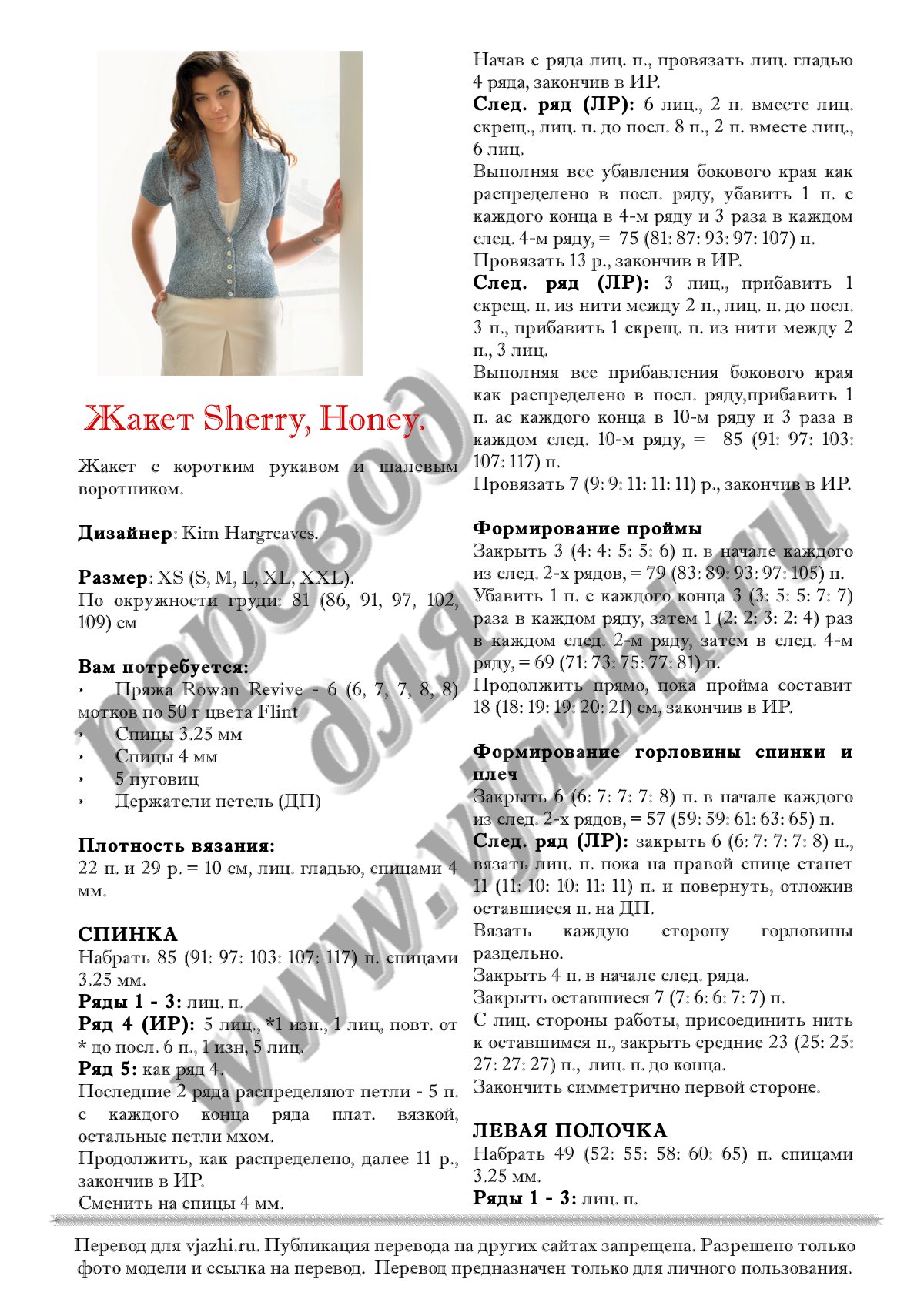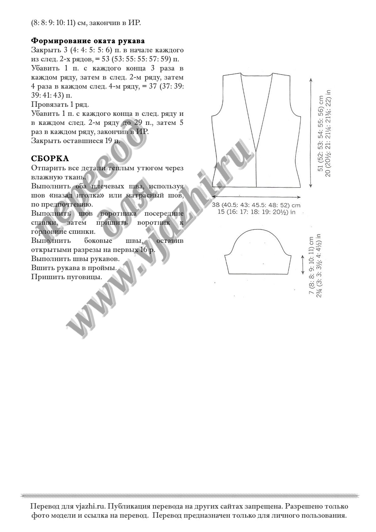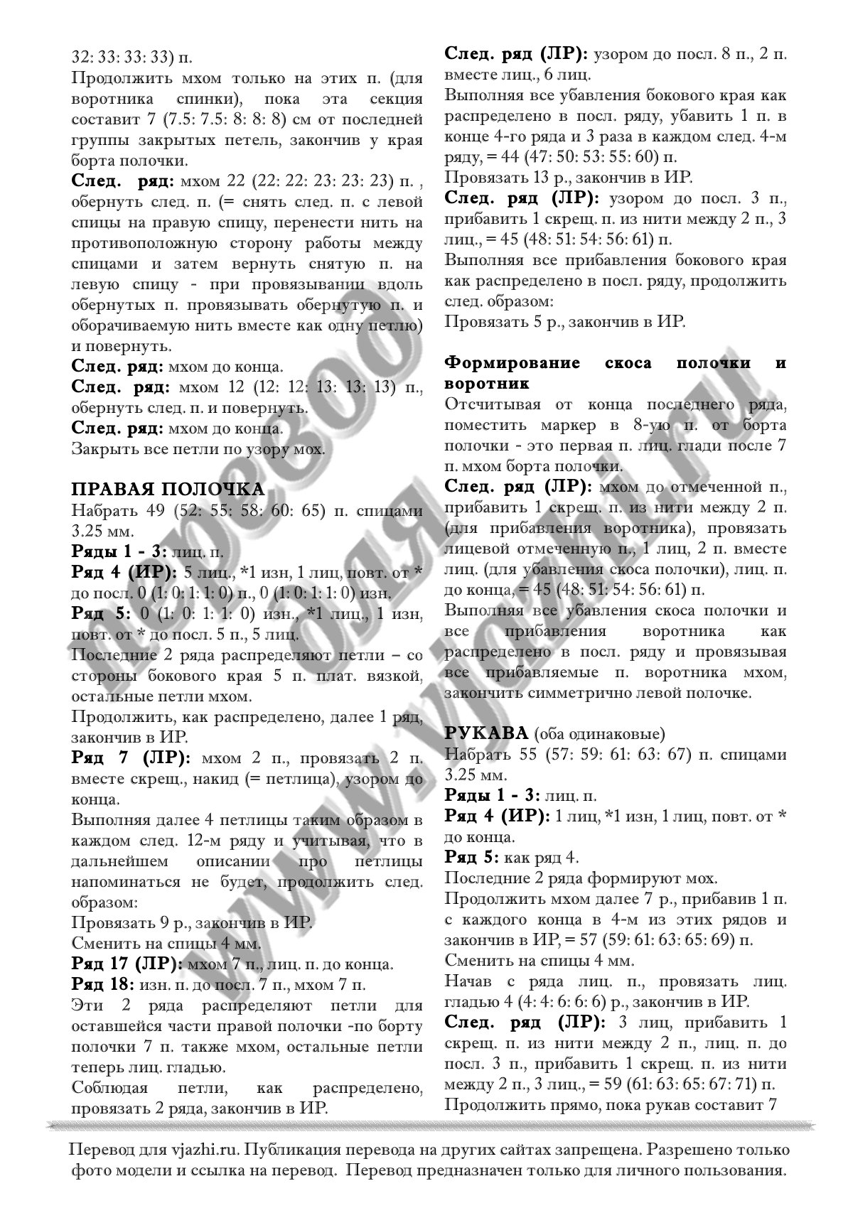 Перевод описания вязания жакета с английского языка.