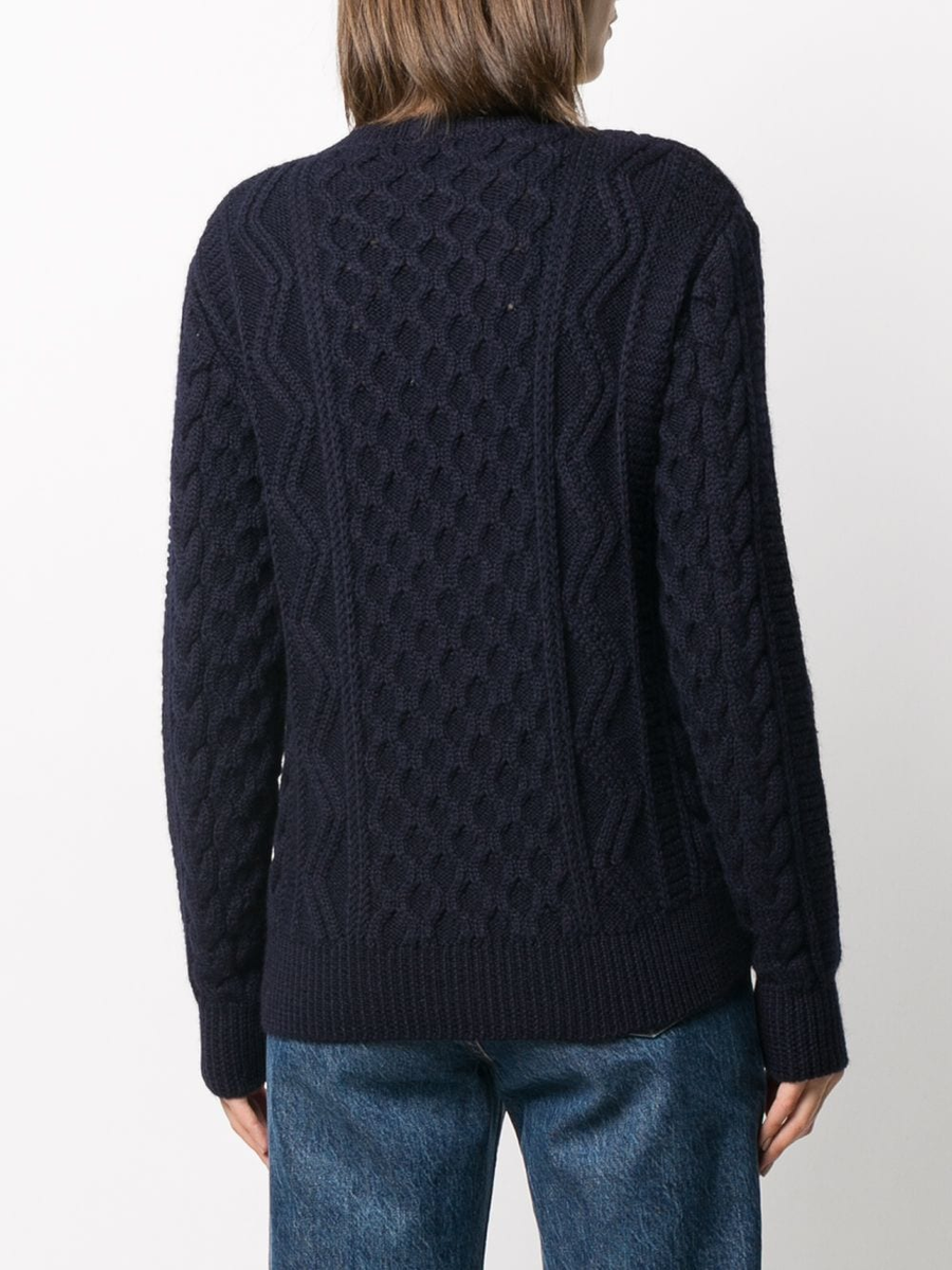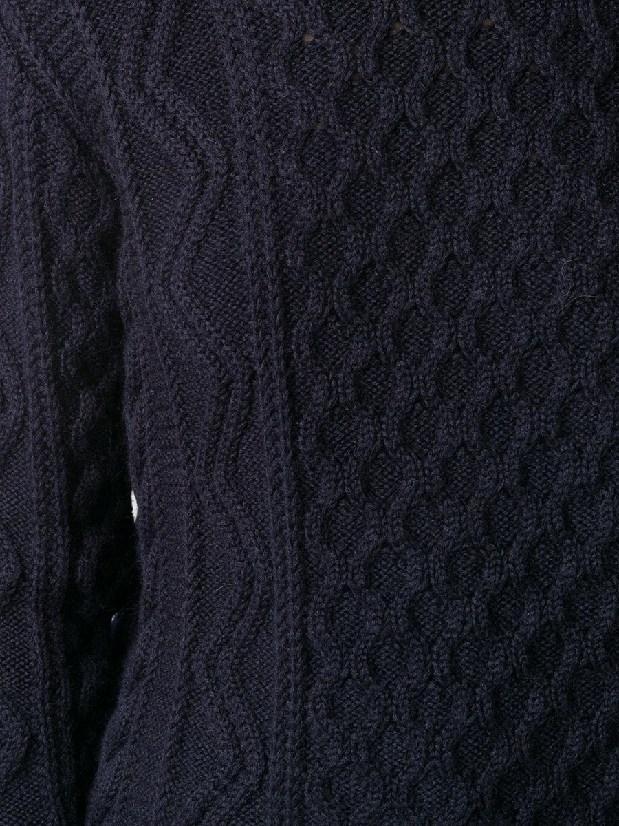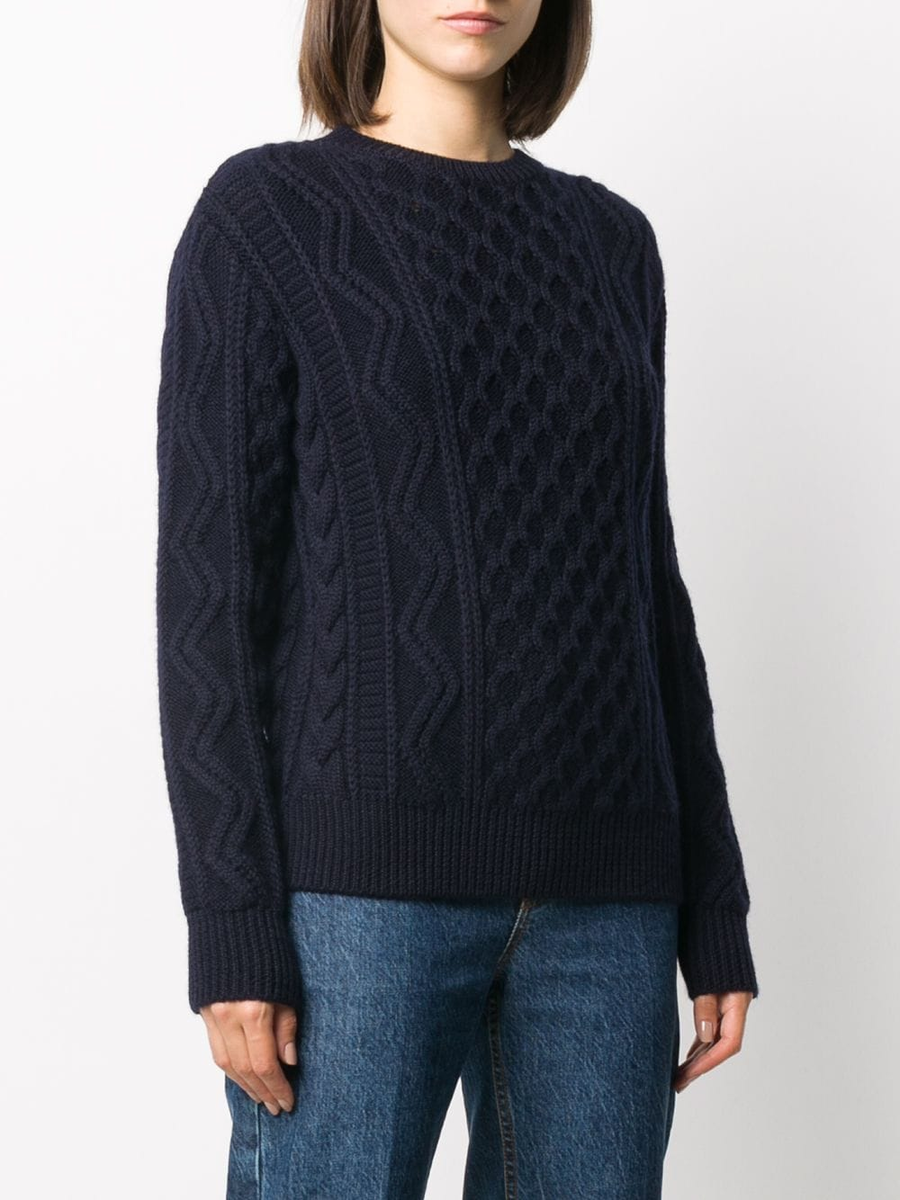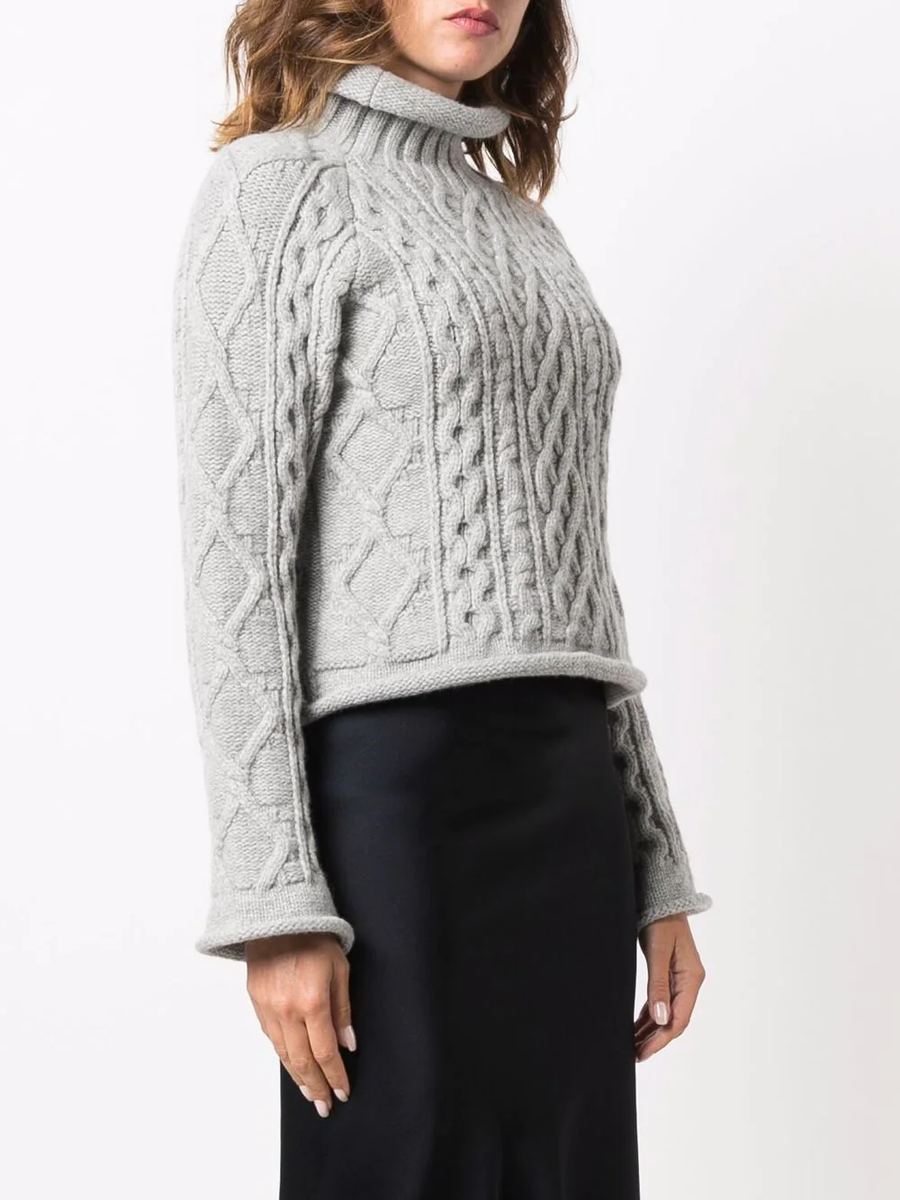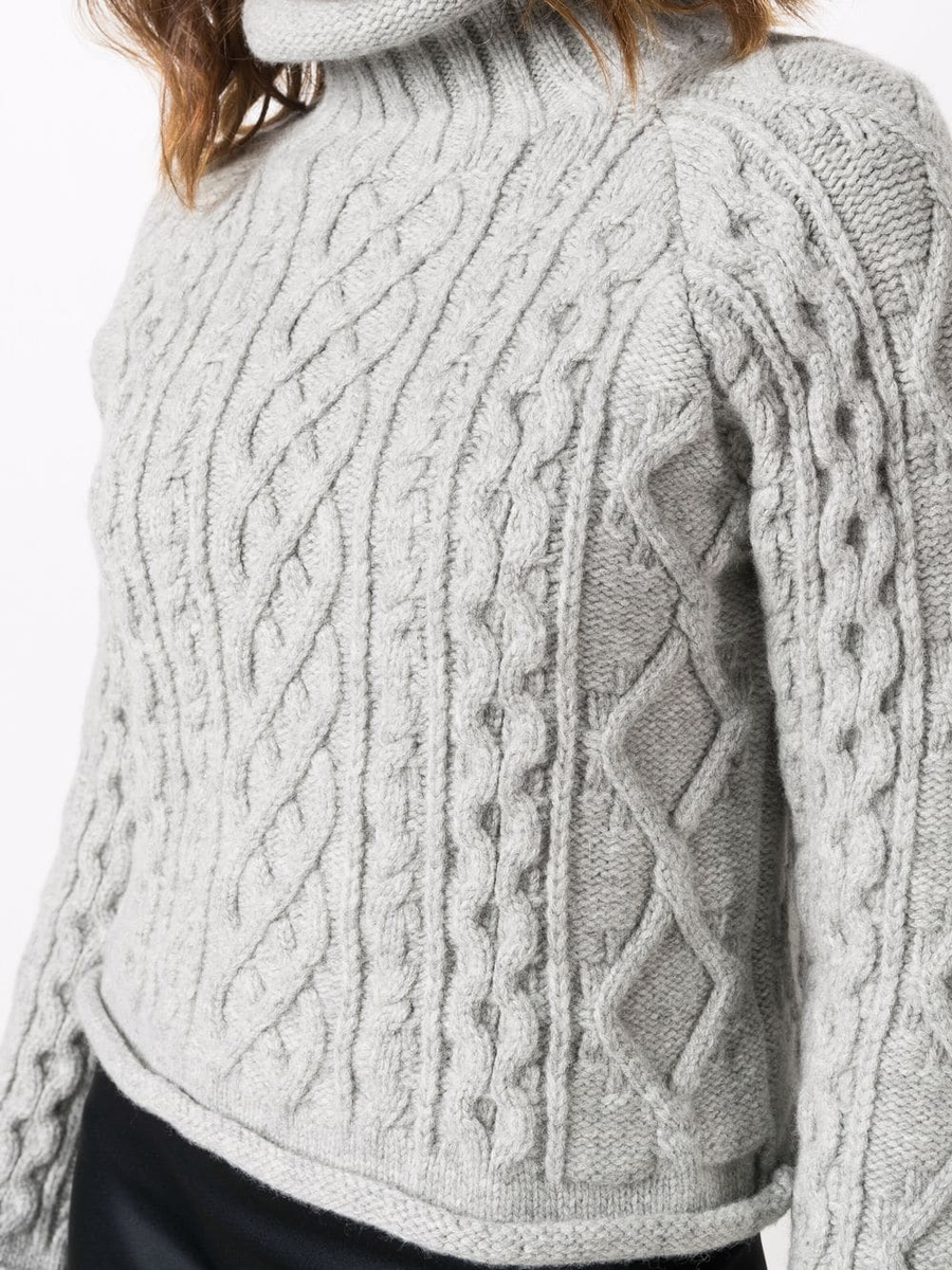 В этой модели интересные косы, но их практически не видно, потому что светлый свитер слился с белым фоном. Почему-то в дорогих интернет-магазинах такое встречается очень часто, хорошо рассмотреть петли и узор сложно.