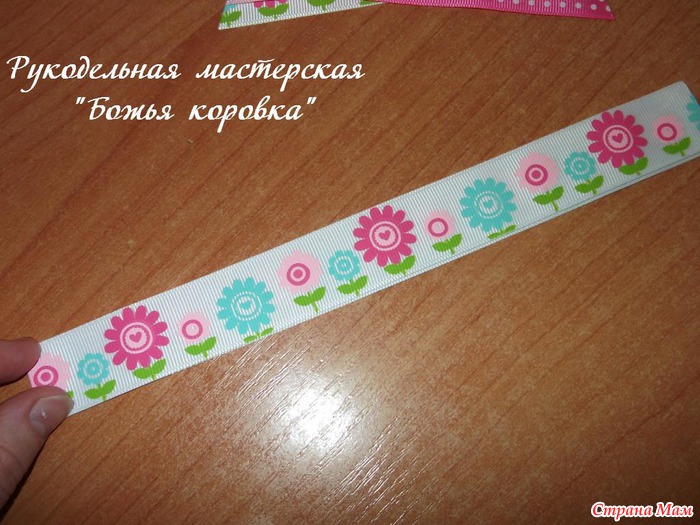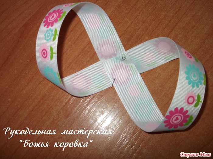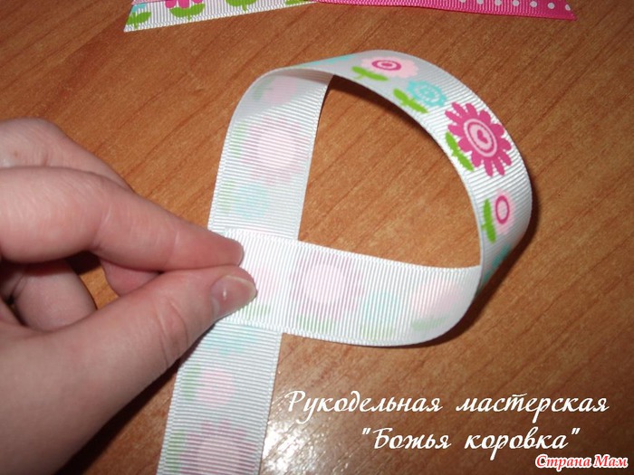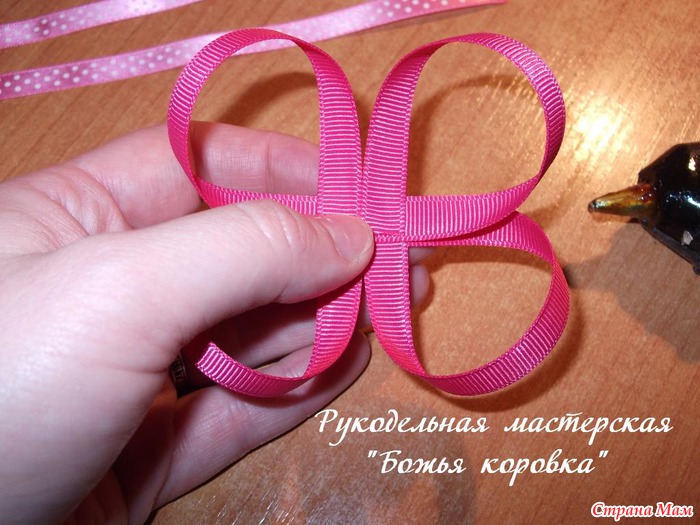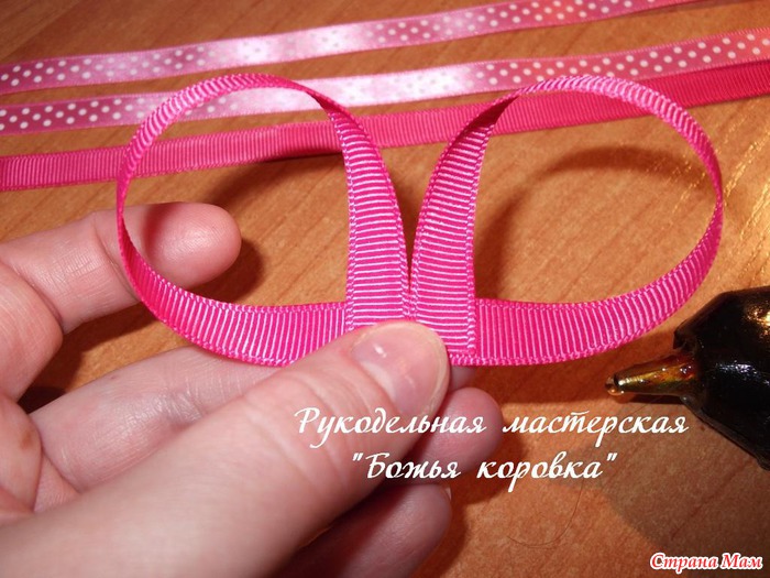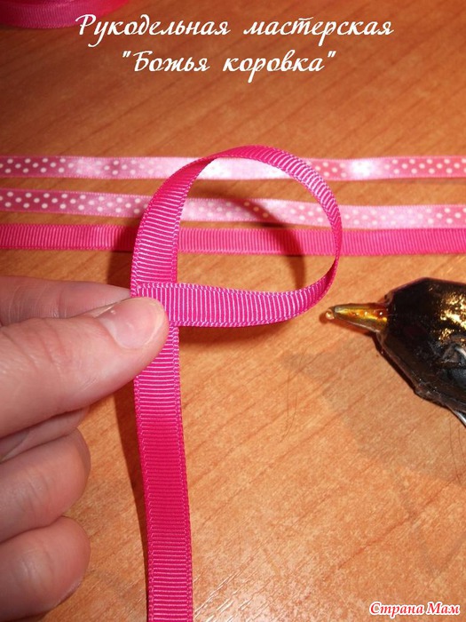 оборачиваем плотно вокруг серединки бантика отрезаем, не забывая оставить запас, опаливаем кончик и приклеиваем внахлест.