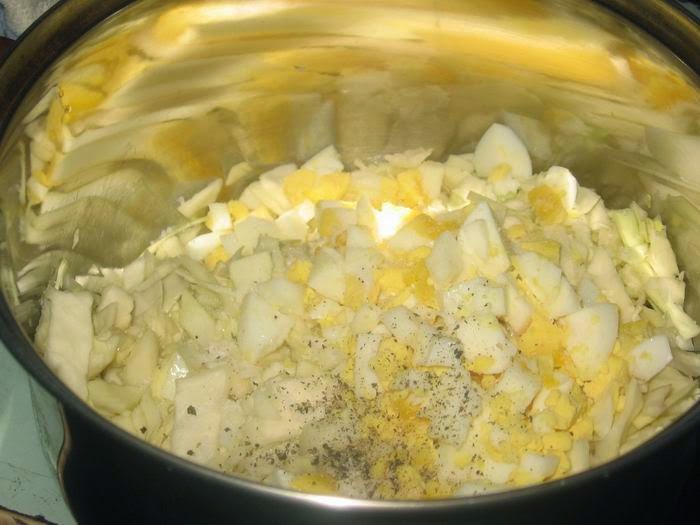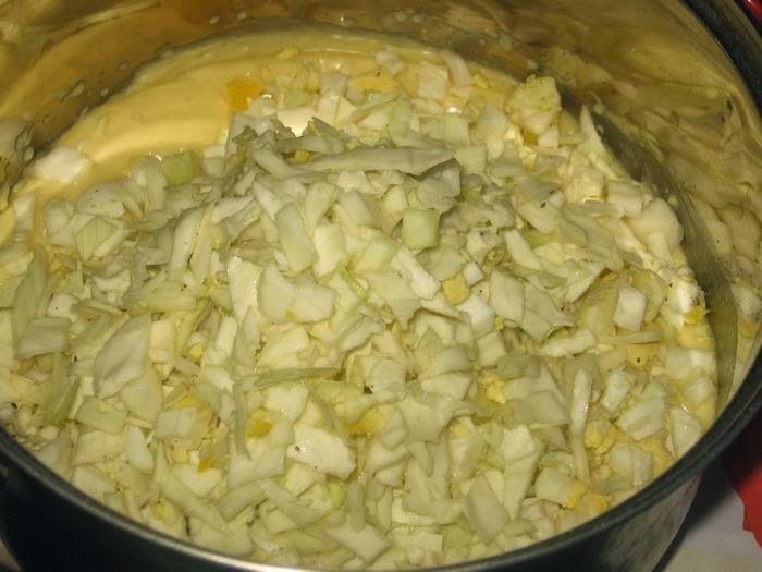 Сегодня решила совместить два дела: и пирог испечь, и что-то на обед приготовить. Получилась вот эта запеканочка. С котлеткой или сарделькой очень непорхо. Я так ела просто так.