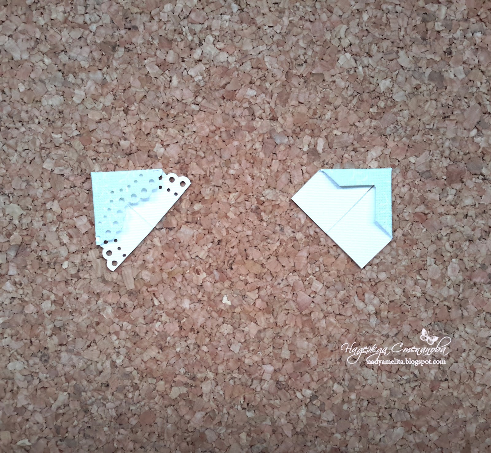 Далее отрезаем нужной нам длины "хвостики" уголка. Вот, что у меня получилось. С обратной стороны его можно склеить при помощи такой же бумаги или сразу вклеить в страничку.