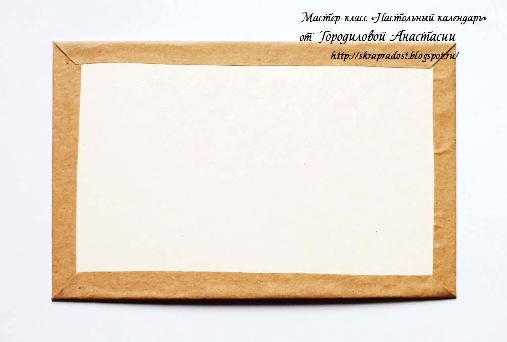 Приклеиваем крафт-бумагу к картону, края сначала загибаем и срезаем немного уголки, затем приклеиваем по меньшей стороне.