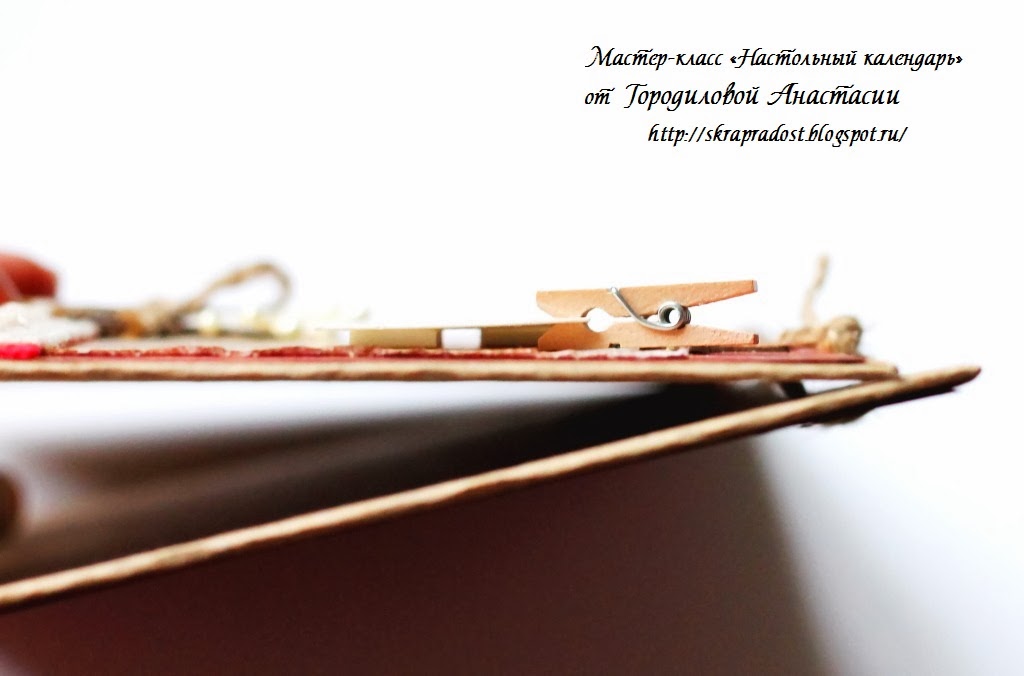 Вид сбоку (видно крепление на тесьму - чтобы календарь стоял и не разъезжался в разные стороны).