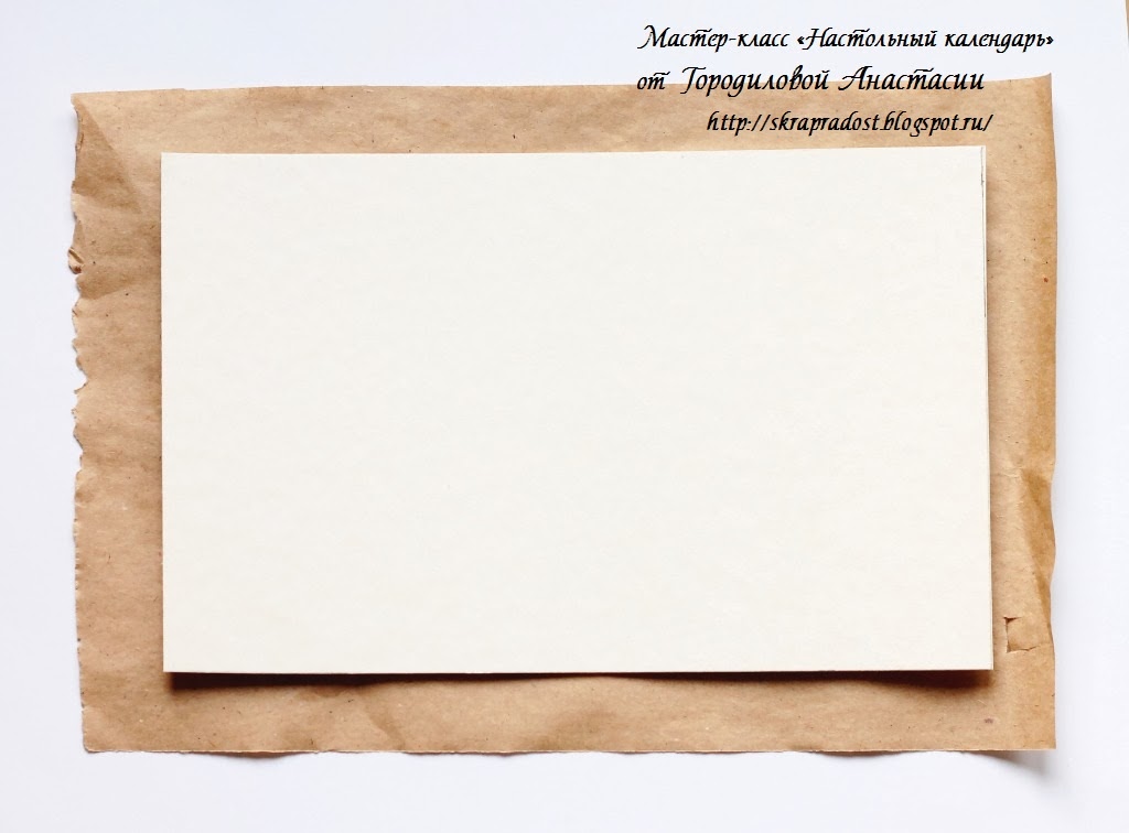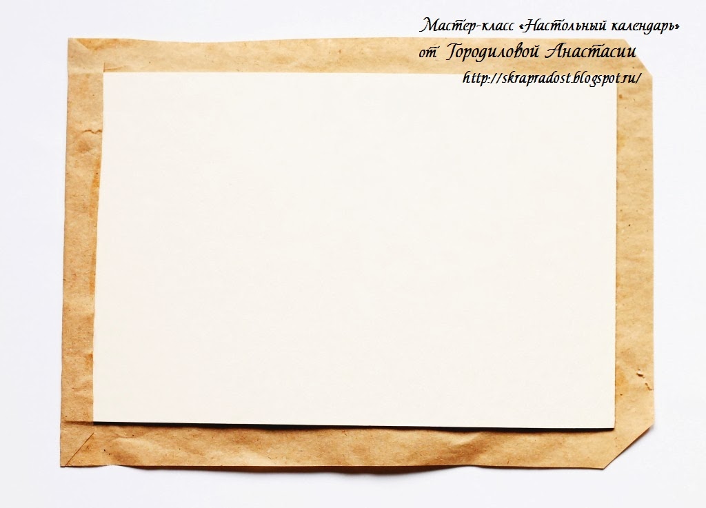 Вырезаем из пивного картона две прямоугольные заготовки размером 13*20 см, а из крафт-бумаги чуть большего размера, примерно 16*26 см, накладываем друг на друга.