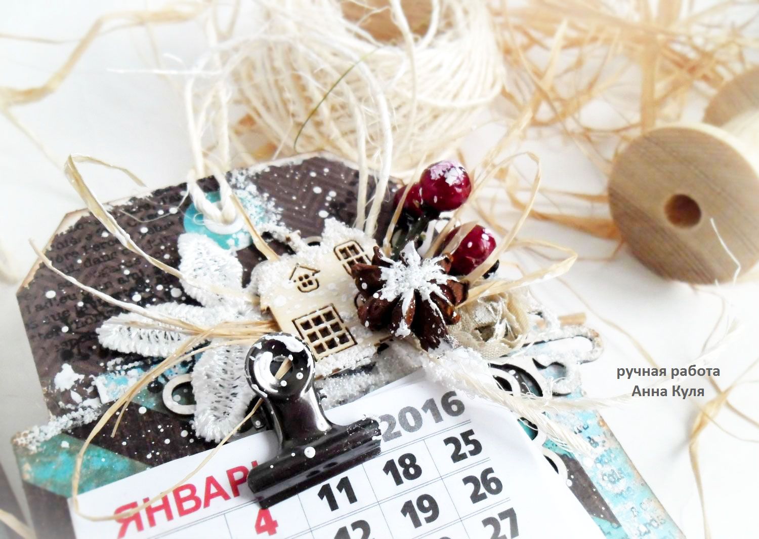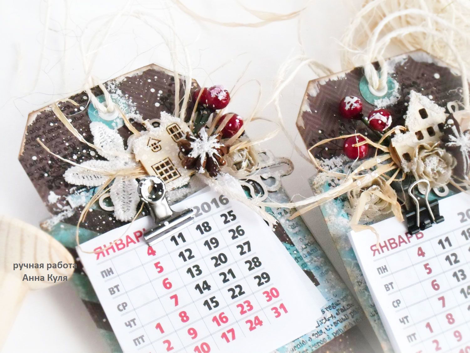 Такие теги-магниты сделала на подарки коллегам по работе: пара часов работы, остатки бумаги от проекта и немного декора. Календарики купила в киоске как-то по пути домой, но если есть принтер, то выбрать удобную сетку, размер и цвет шрифта еще проще.