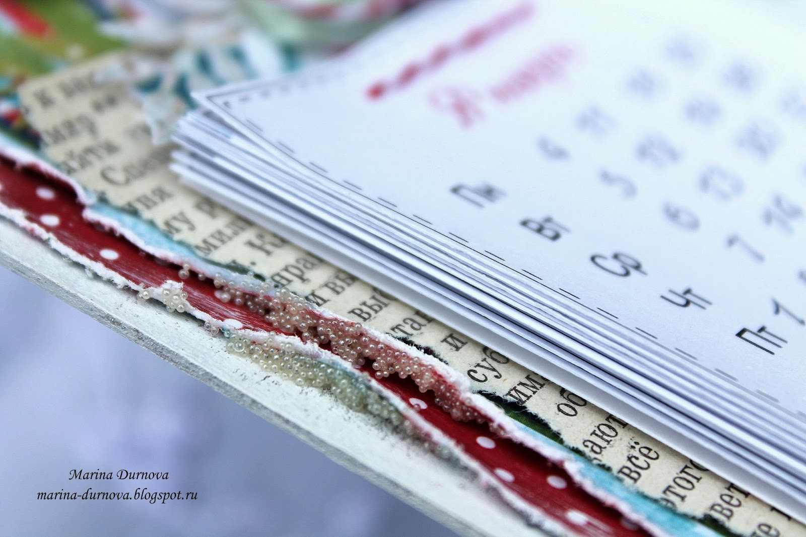 3. Склеиваем весь наш календарик и приступаем к нанесению мелких деталей, акцентов, делая работу законченной.