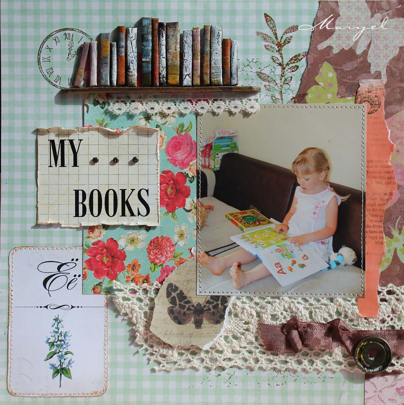 А здесь уже полочка на своем месте)))!! Я ее клеила на глосси акцент, но можно воспользоваться и другими клеевыми материалами.ПС: когда примеряла это украшение на страницу, решила некоторые книжки сделать светлее с помощью белой акриловой краски и кракелюра.