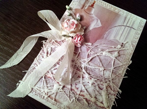 Именно такой легкой, изящной, кружевной получилась открытка Ольги Казанцевой "Платье невесты".