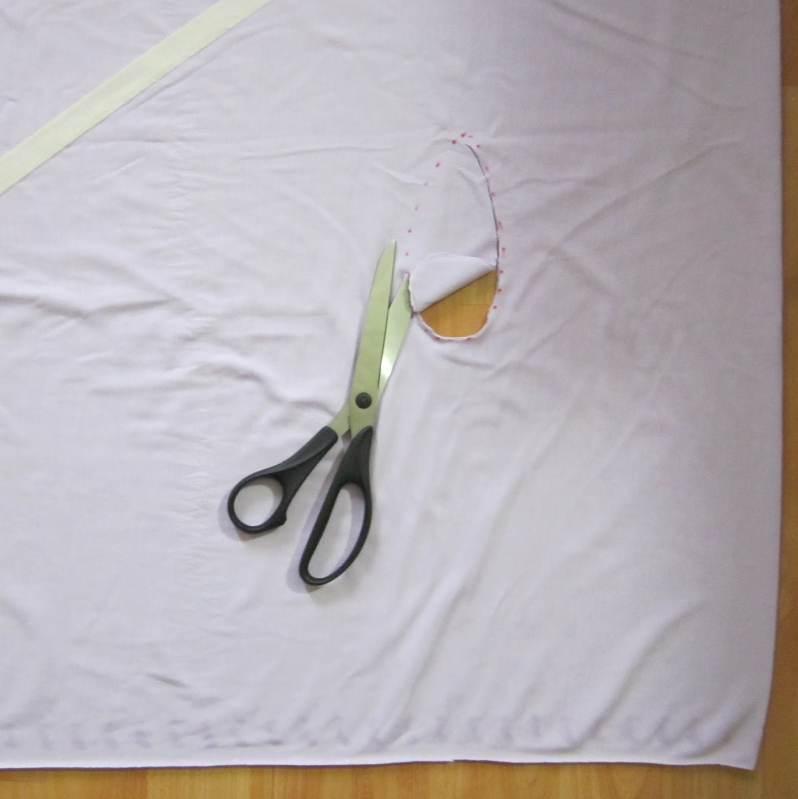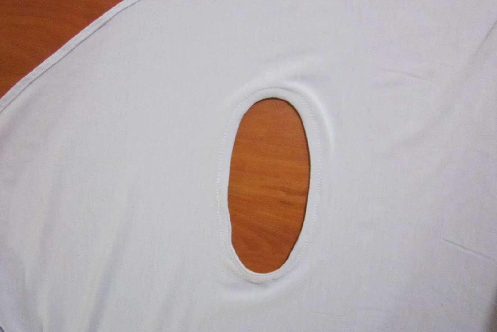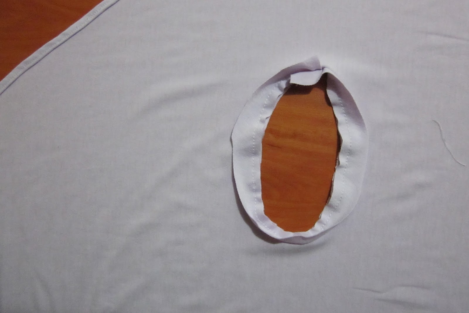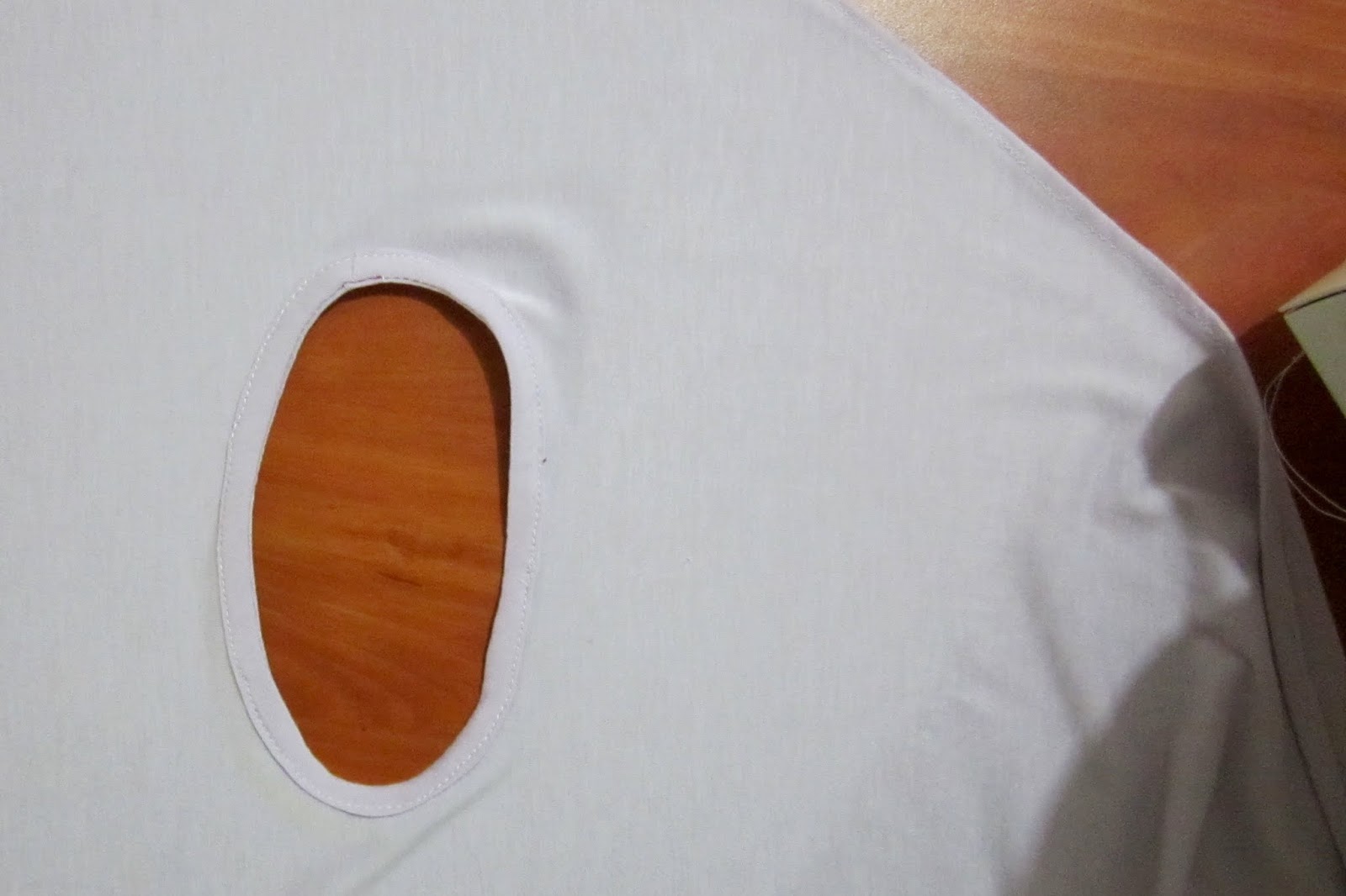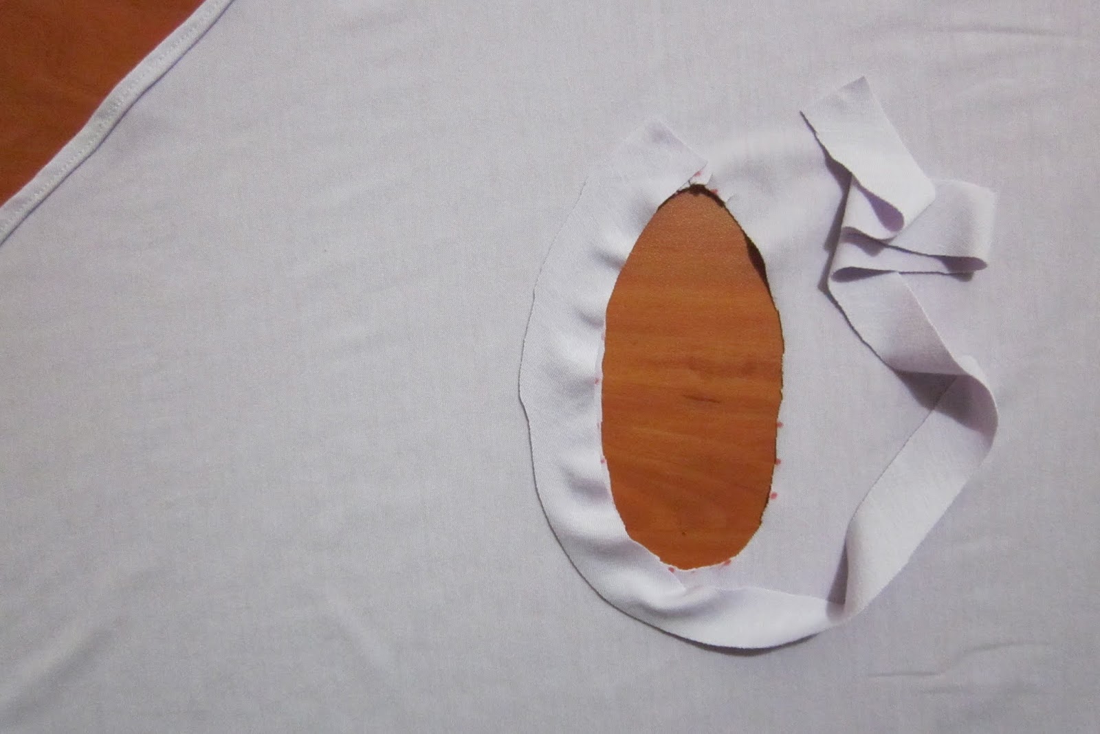 - Наведите смещения ленты из той же ткани в проймы, для лучшей отделки.