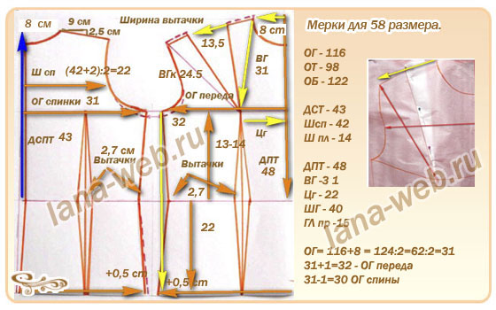 Особенности расчетов для выкройки-основы 50-58 размеров.