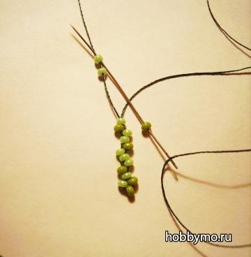 Материалы: - 21 длинная бисерина (10 мм) 4-го размера (стеклярус)