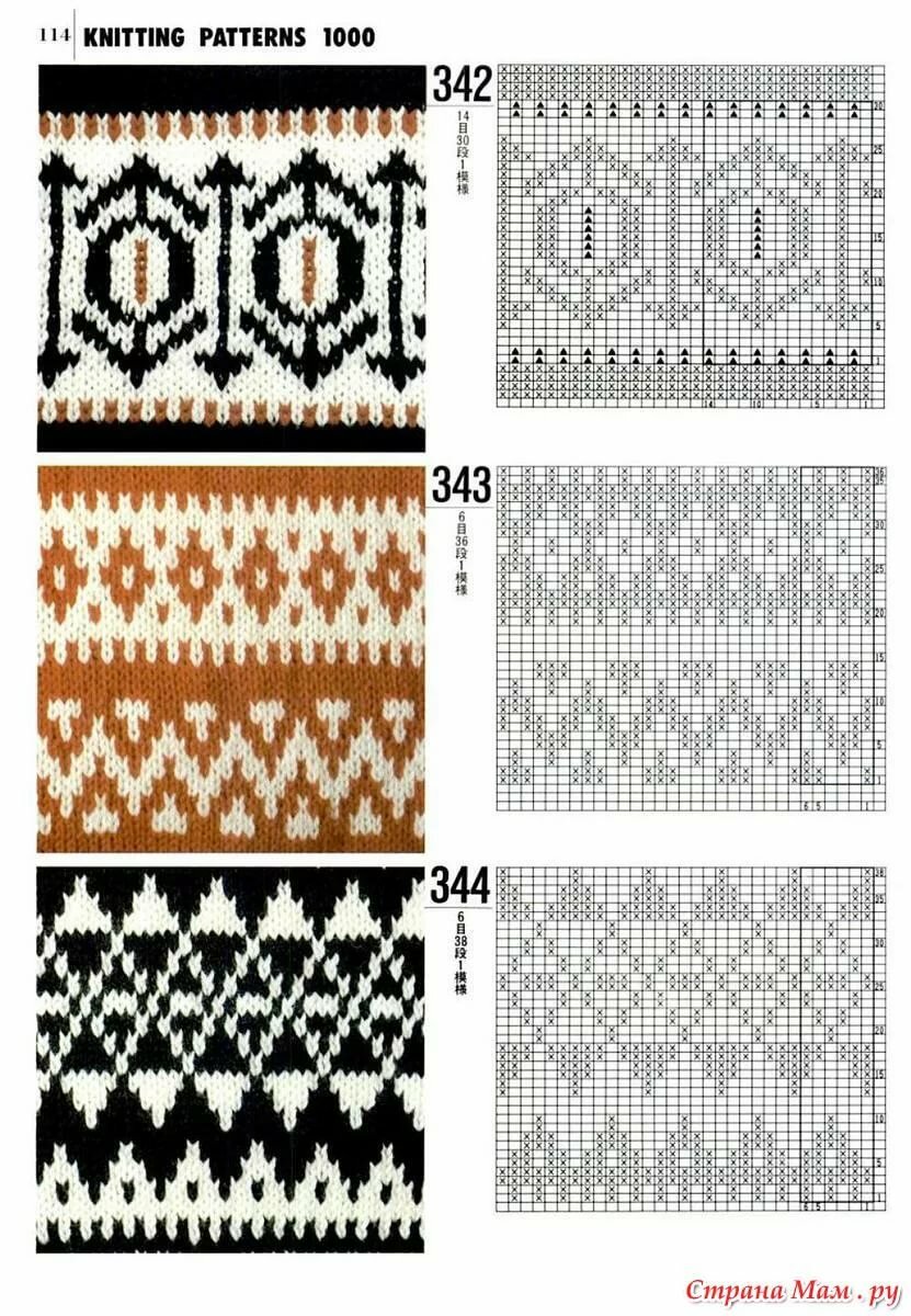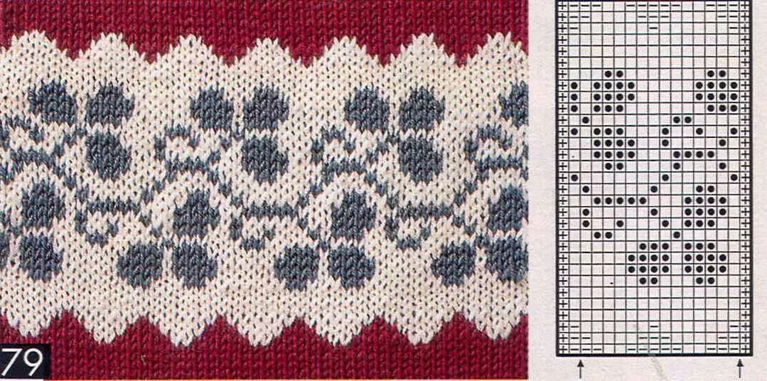 3. Как вязать? Дальше замыкаете вязание в круг и вяжете лицевой гладью по кругу с узорами или без как вам желается. Если хотите украсить жаккардом, то не забудьте перед ним добавить 7-9 петель, т к он стягивает полотно. Примеры простых жаккардов на скрепке.