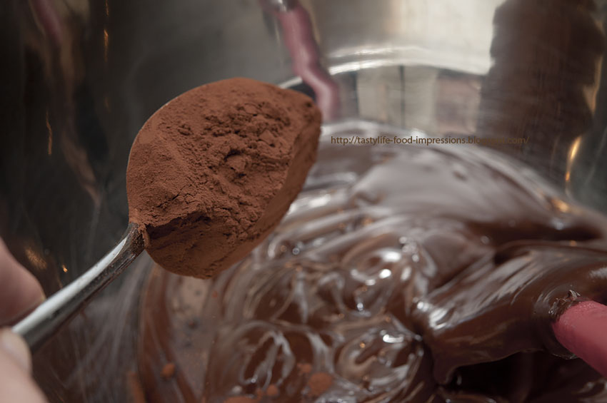 Так как у меня не было 80% шоколада а был только 45% , то я решила добавить какао- порошка 3 столовые ложки с горкой, чтобы "загорчить" сладость шоколада