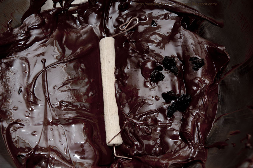 Я разделила всю трюфельную заготовку на 2 части в одну я добавила вишню, в другую нет, мне захотелось попробовать эту шоколадную массу в оригинальном вкусе