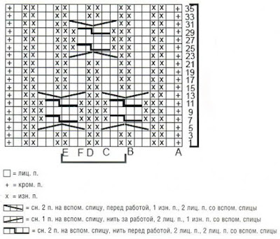 Узор «коса»: вяз. по схеме, где показаны только лиц. р., изн. р. вяз. по рисунку.