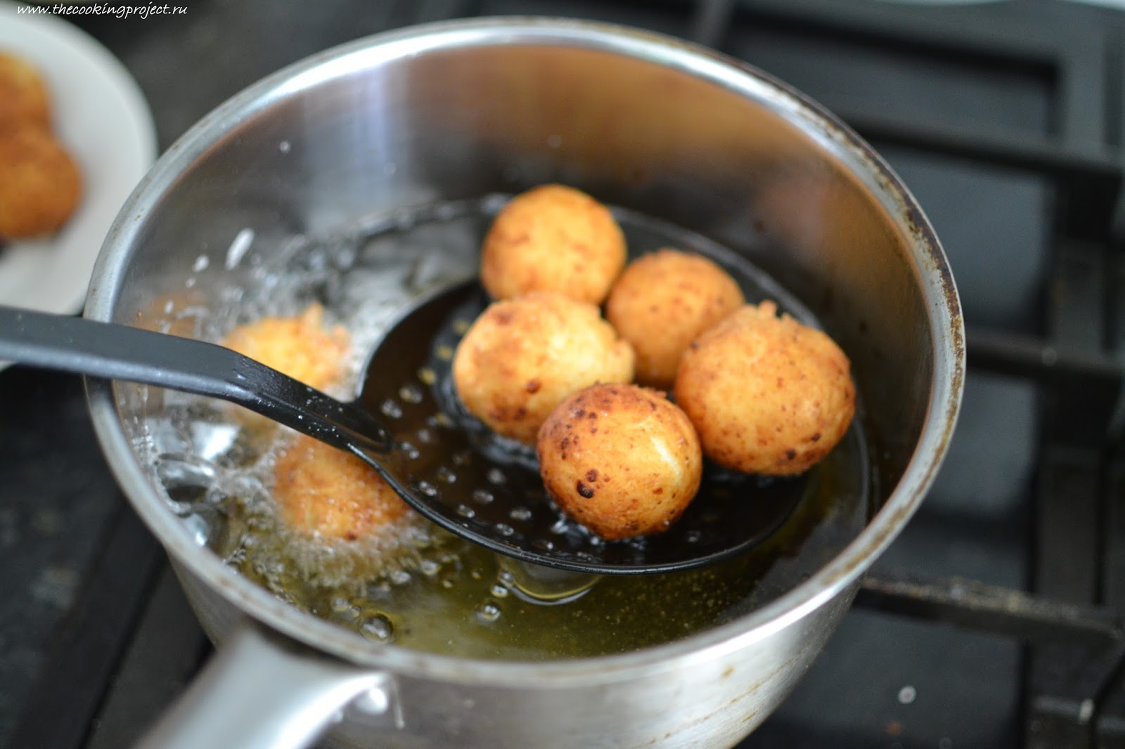 Оно получается не сильно жидким. Смазываем ладошки растительным маслом и формируем творожные шарики.