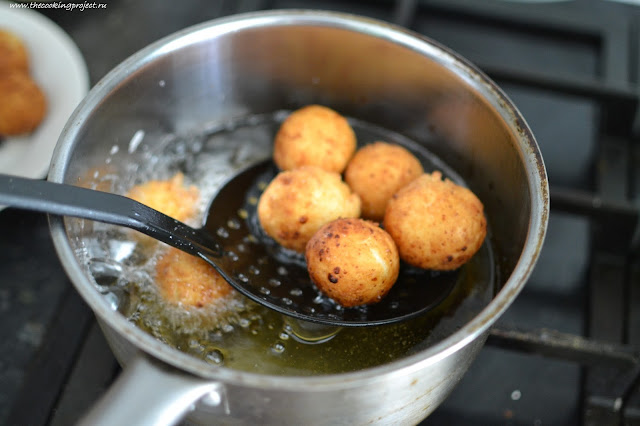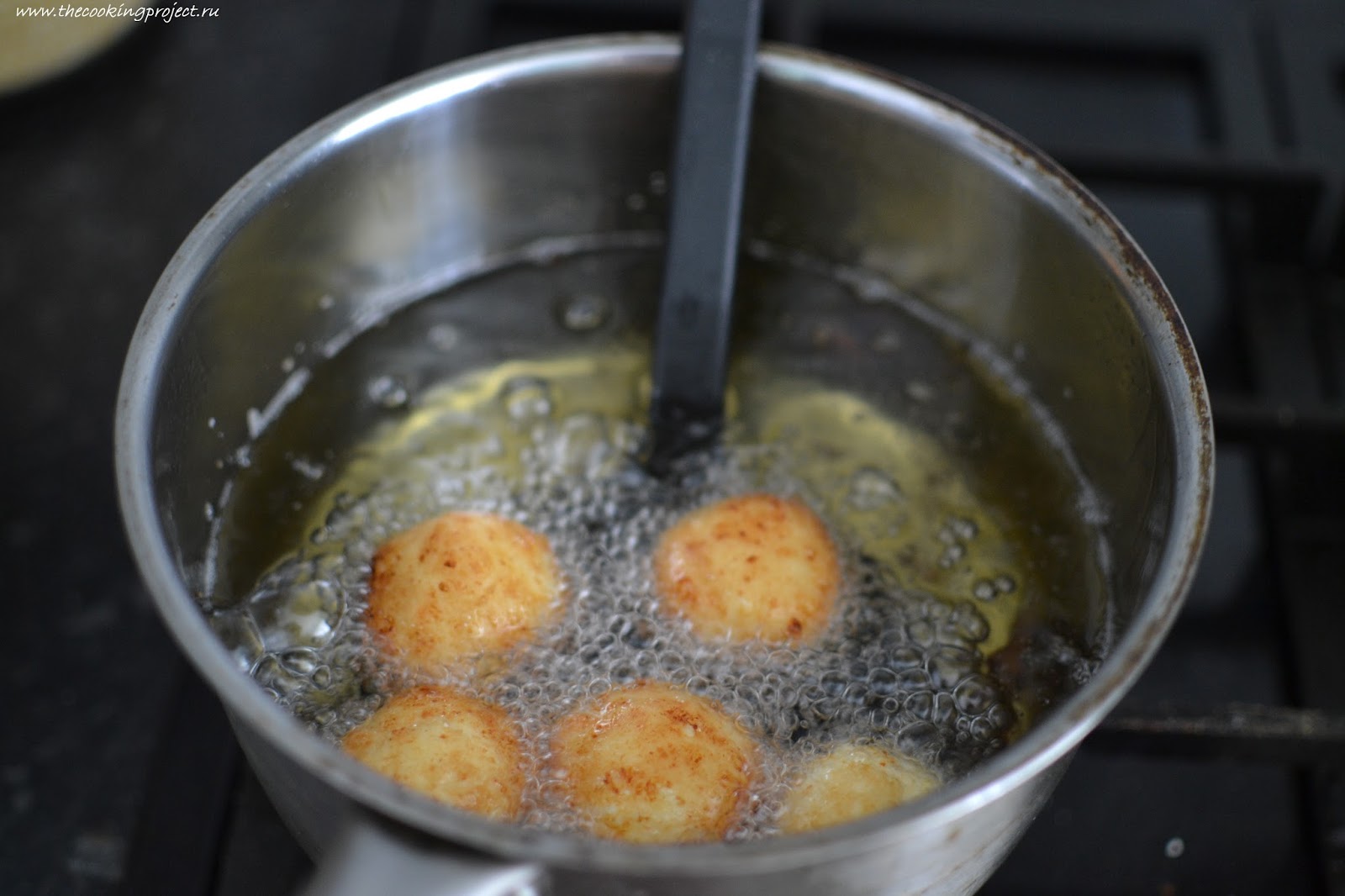 2. Для жарки я использую обычный ковш с толстым дном, растительное масло заранее необходимо разогреть, чтобы пончики сразу же начинали обжариваться.