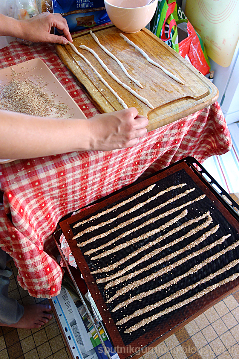 Обычно размером гриссини чуть больше карандаша, но у моего помощника был полёт фантазии : поэтому наши палочки получились разных размеров и толщины ;)
