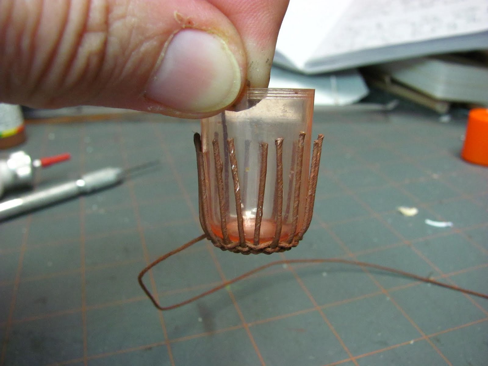 Круг вы видите, 7/16 "(6 мм) в диаметре. У меня 17 штук провода держаться в ней. Отрежьте провода в 1 дюйм (2,5 см) части, вырезать одну часть 2 1/2 "до 3" ( 63 мм для 77 мм), что ваша ручка.