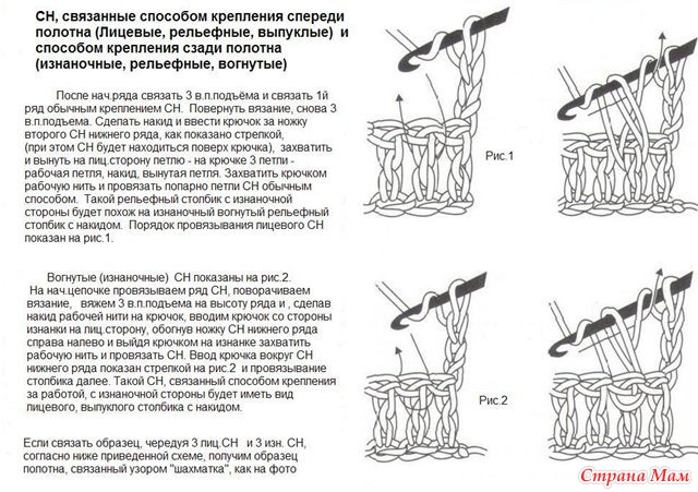 Мы вяжем по нижней схеме ИЗНАНОЧНЫЕ РЕЛЬЕФНЫЕ СТОЛБИКИ.