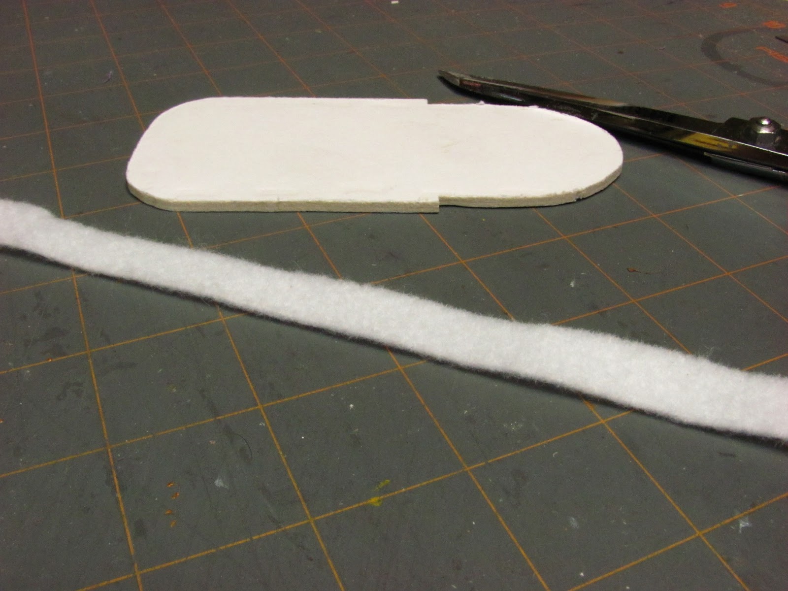 First, I cut strips of card stock the thickness of the base and glued this on the base to cover the foam core.