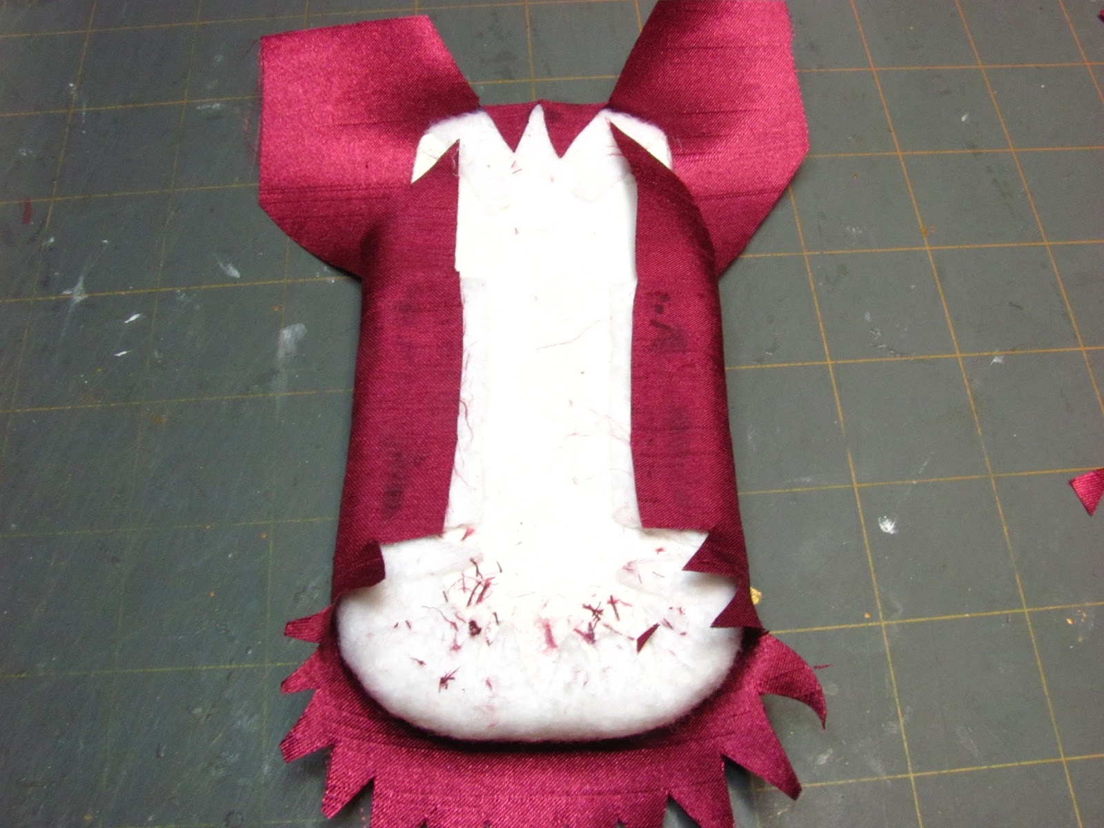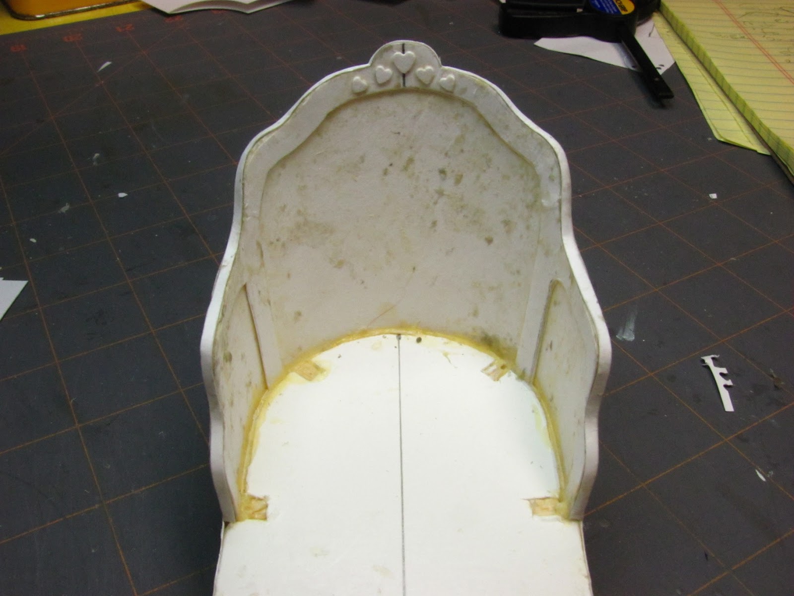 Trim off extra fabric in the seating area and glue the ends down leaving little "ears" of fabric. I apply glue inside these "ears" of fabric.