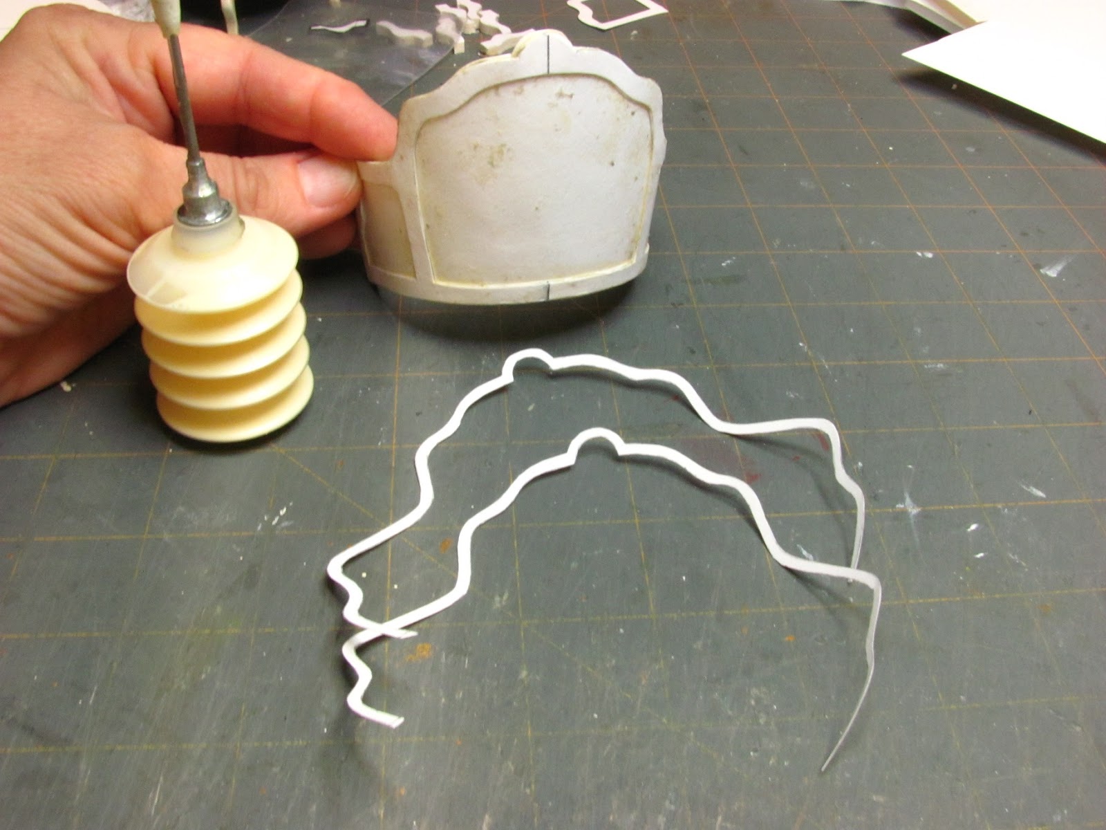 When the back is stiff take it off the form (top of air freshener container) and place it onto the base matching center lines. I know I don't have one drawn, but you do!