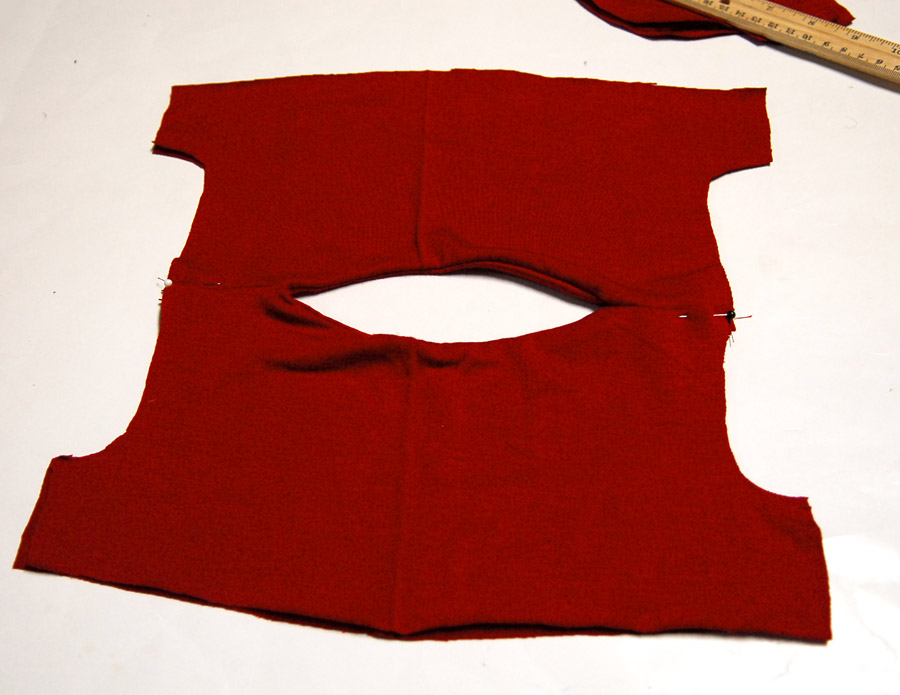 Теперь лиф. Вырезать 2 передние и 2 задние части лифа.Сшейте переднюю и заднюю части вместе в плечах. Затем сшейте их лицевыми сторонами вокруг шеи. Вывернуть на лицевую сторону.