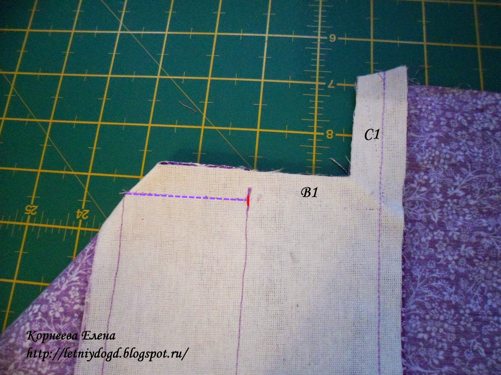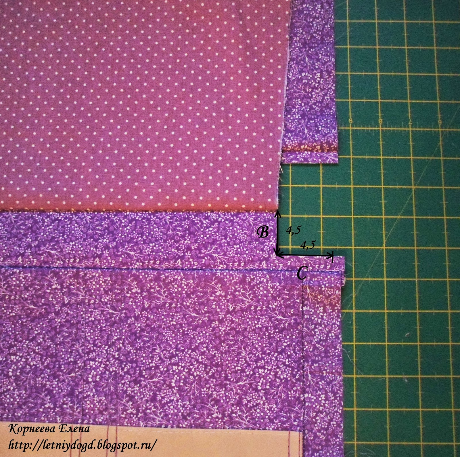 Ниже видно, что по стороне С остался непристроченным участок длиной 1,5 см, который в дальнейшем уйдет в боковой шов.