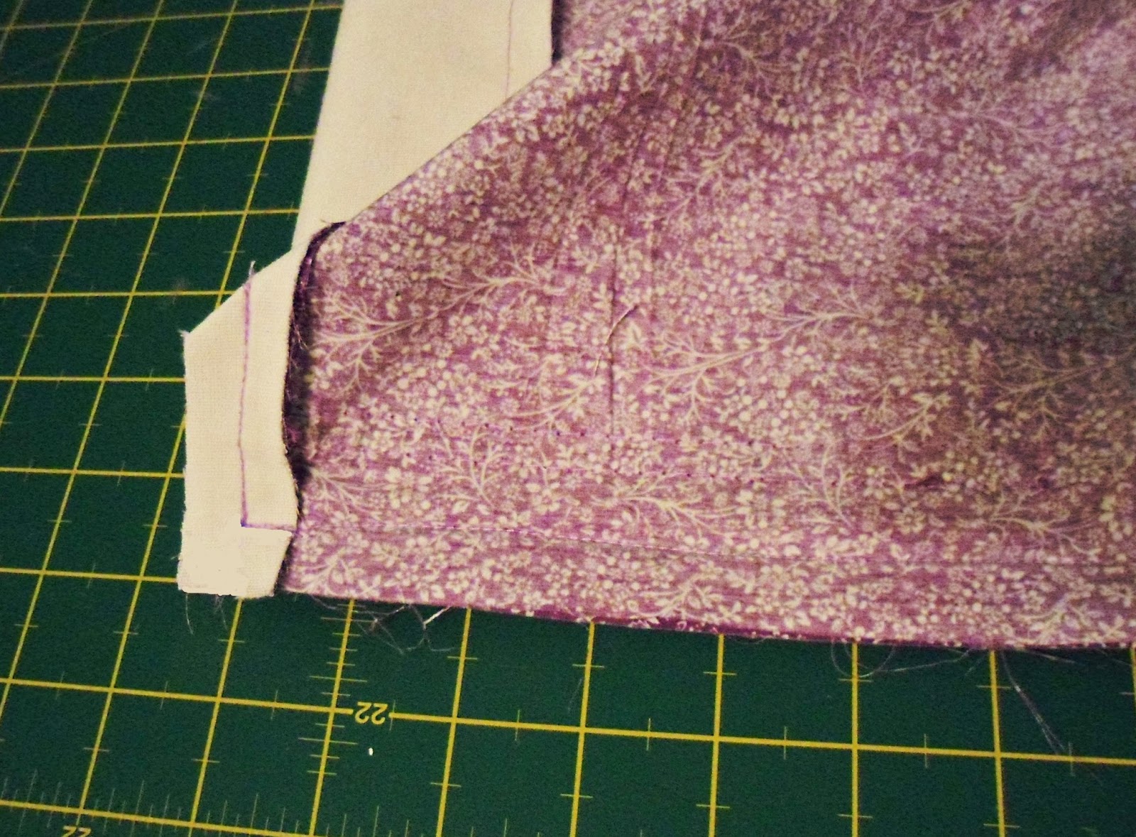 Переворачиваем подкладку на изнаночную сторону. Складываем вместе срезы В и С, прострачиваем, не доходя до конца стороны С на 1,5 см до конца (см. фото)