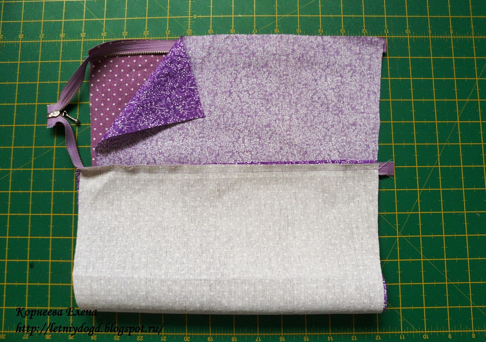 Высота - это высота сумки минус ширина обтачки молнии. У меня разница составляет 4 см, так как обтачка шириной 4 см.(внизу я сделала короче на 1 см, так как вставляю в дно сумки полиуретановую прокладку толщиной 1 см).