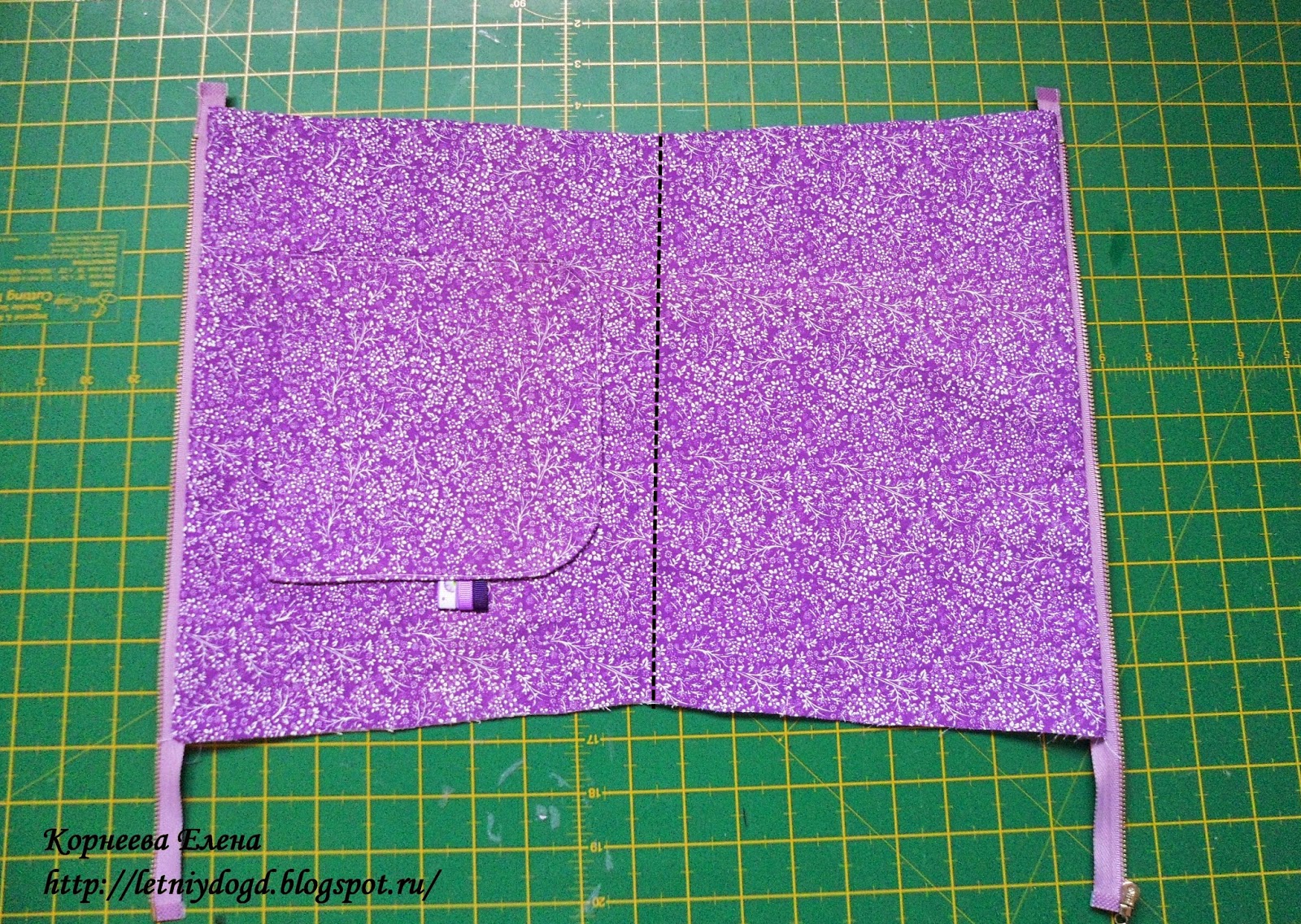 2. На этом этапе, если вы хотите внутри перегородки сделать еще и потайной кармашек, то самое время его пришить на деталь подкладки. (эту часть процесса я не фотографировала, уж простите :))